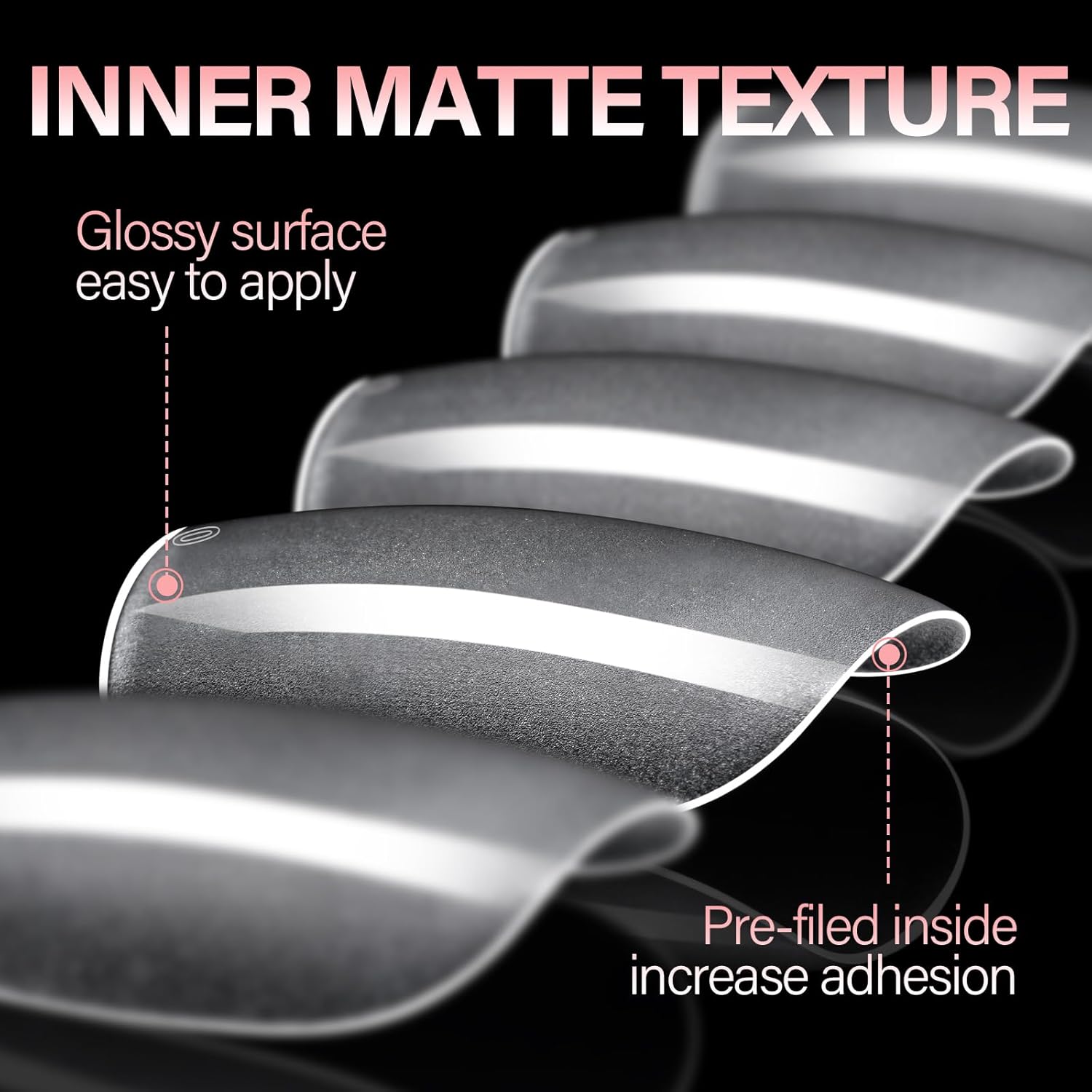 • 【AILLSA fake nails, Paired with AILLSA glue for better fit】: Our soft gel tips feature “Thin back edge, thick front edge”. The thinner back edge can make the soft nail tips fit your nails better, which will not make you feel uncomfortable. Also, the full cover matte nail tips are firmer bonding to your nails for a seamless fit with no air bubbles; The thickened front edge makes it not easy to break or bend, having longer lifespan.