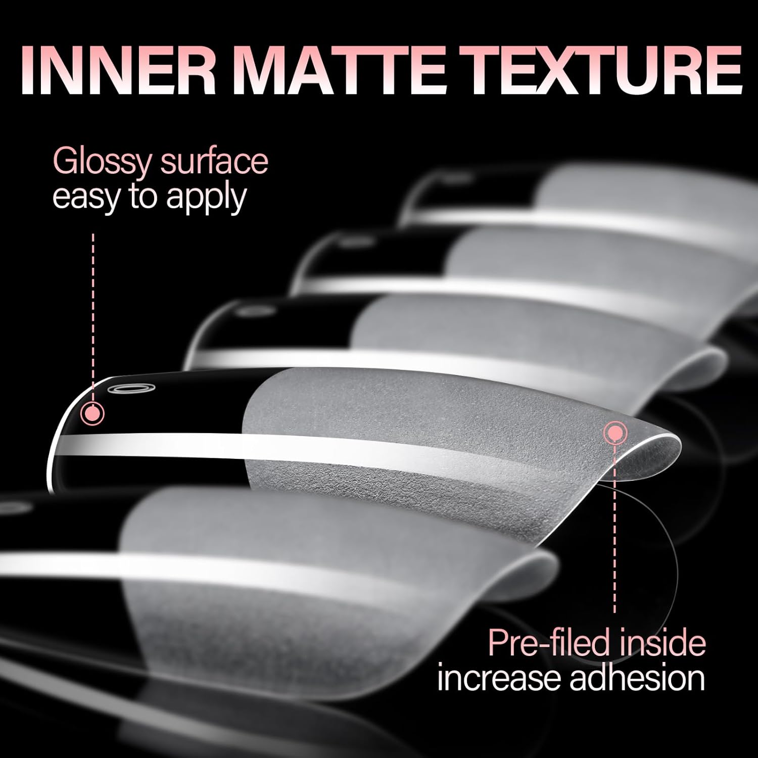 • Upgraded Half Matte Coffin Nail Tips: Our full cover half matte false nail tips are made of high-quality materials, breathable, lightweight and durable, making your nails look more natural and beautiful. You can easily extend your nails with AILLSA pre-buff gel nail tips!Half matte texture design, which can increase friction and adhesion.
