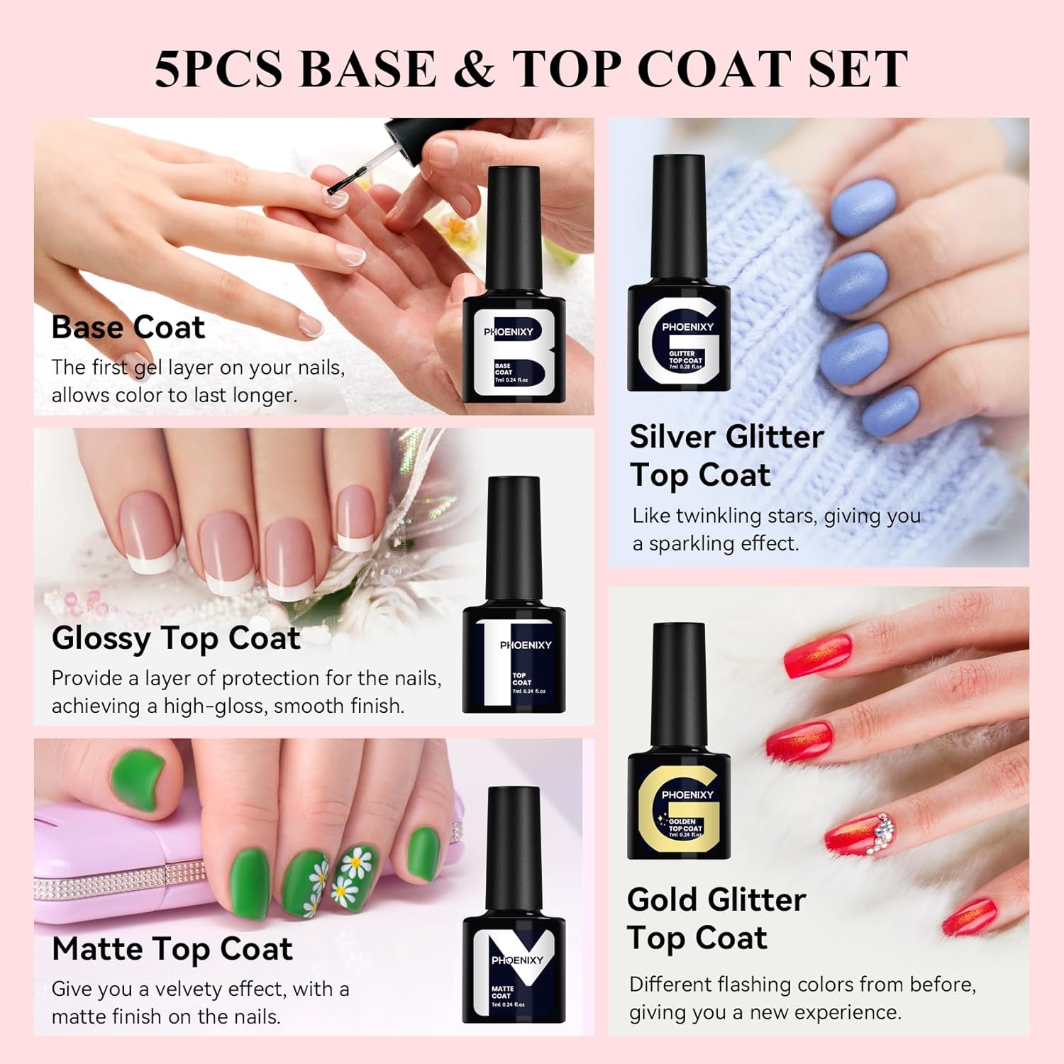 • Good Texture and Good Effect: The high quality of Phoenixy nail polish makes it is non-toxic to the skin. The natural resin material with plant ingredients results in a minimal odor. The effect it presents is also very beautiful, with excellent color display and gloss retention, allowing the color to fully show its beauty.