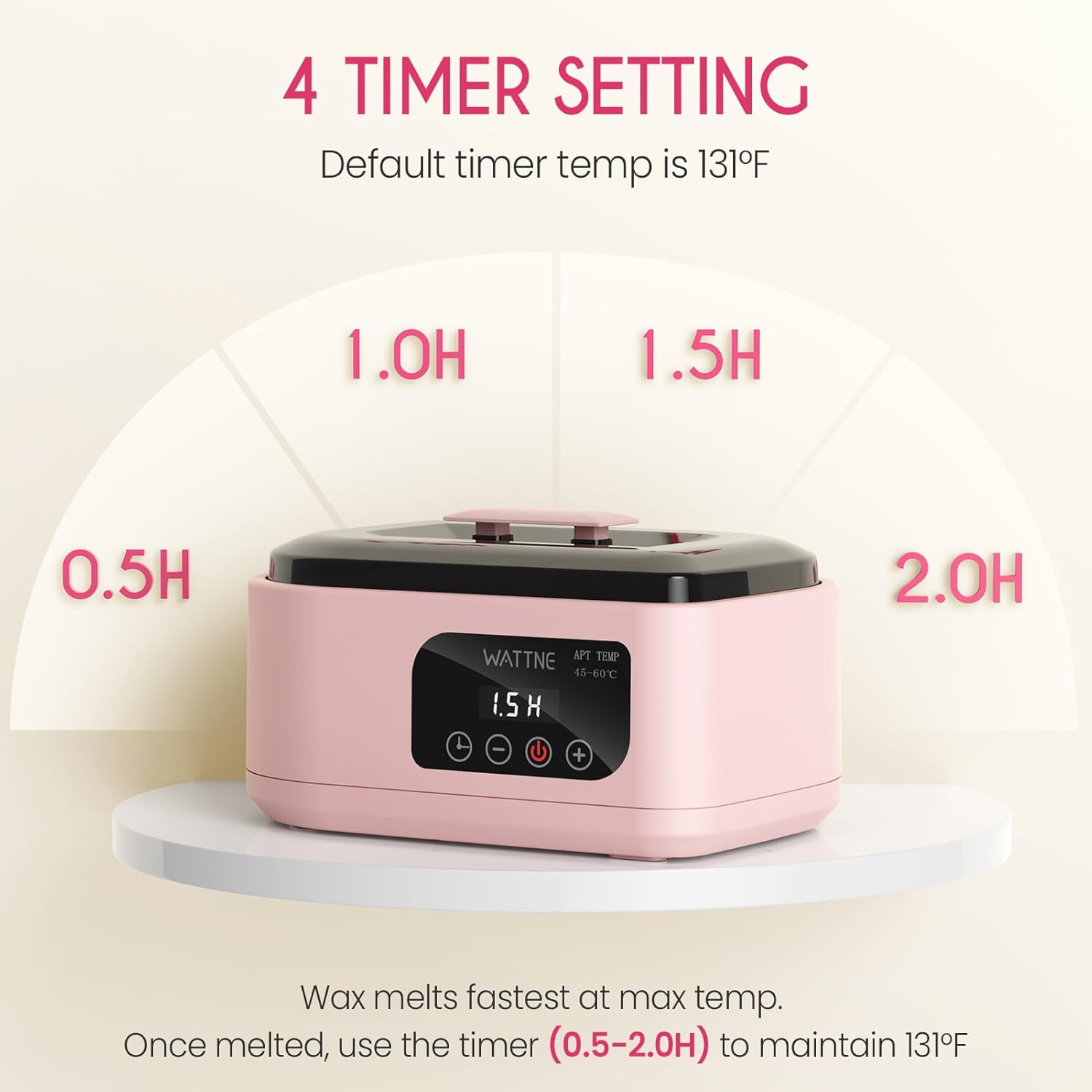 • 4 Smart Timer Settings + keep-warm mode: Our auto-shut off timer lets you set sessions for 0.5H/1H/1.5H/2H. The keep-warm function maintains your desired temperature, so wax stays melted without reheating, Perfect for multi-step treatments or salon use