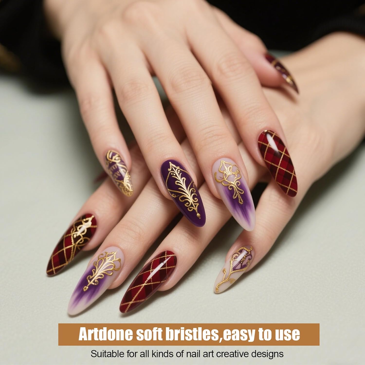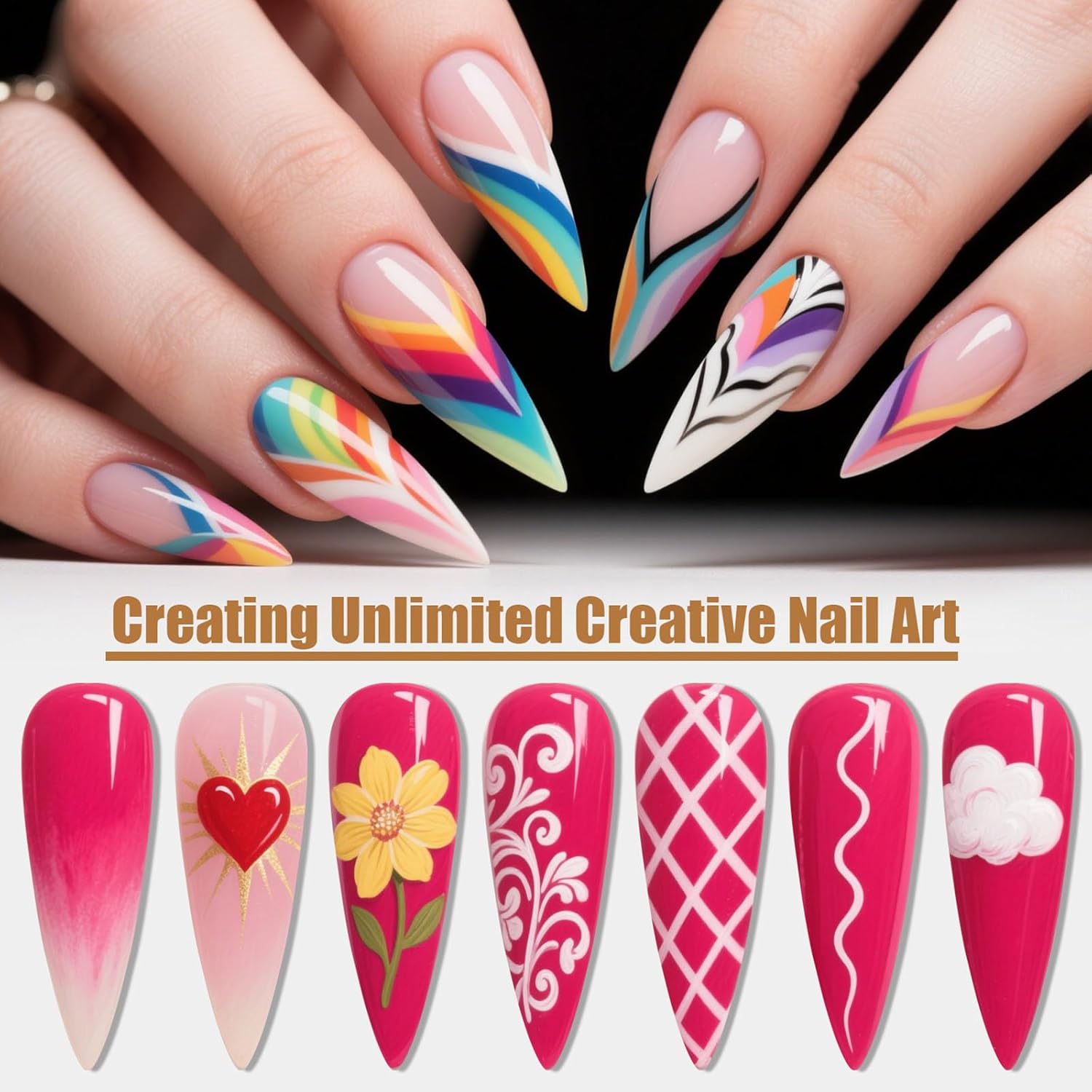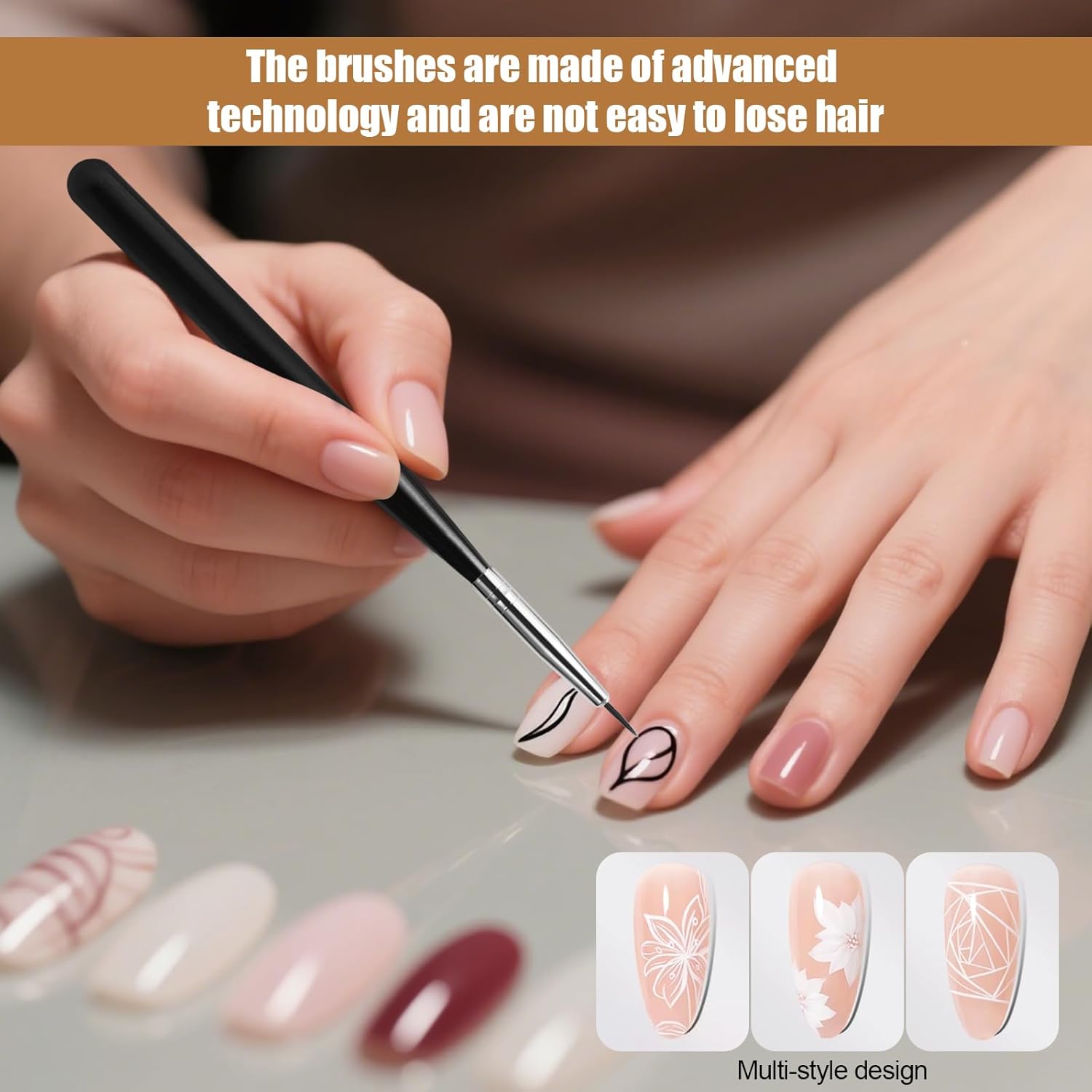 • FEATURES:The variety of brush sizes is good for nail art design, helping you create beautiful nail patterns in seconds. Ideal for drawing thin fine lines, painting flowers and pattern design on nail tips. Great for small details, filling in colors, marbling, swirling, blending, short strokes, etc
