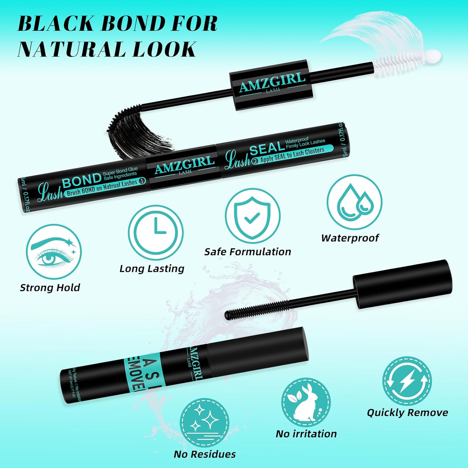 • Premium Cluster Lashes Applicator Tools : 2 in 1 eyelash extension bond and seal design in the lash kit for eyelash extensions beginners is waterproof and long lasting.The rose gold lash tweezers are designed with high-quality stainless steel and anti-static coating,and great grip make grab clusters lashes easier.
