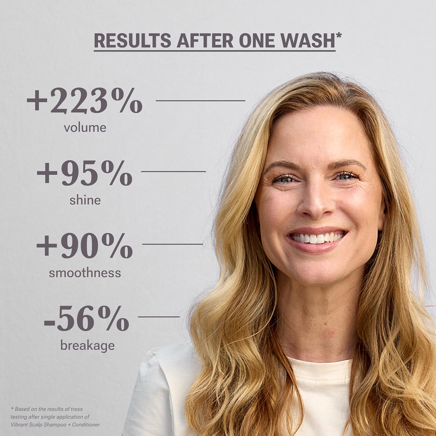 • Vibrant Scalp Conditioner – Infused with Elastaplex Technology, this conditioner increases hair volume by 233% and smoothness by 90% after one use, while reducing breakage by 56%, leaving hair visibly fuller and healthier.*