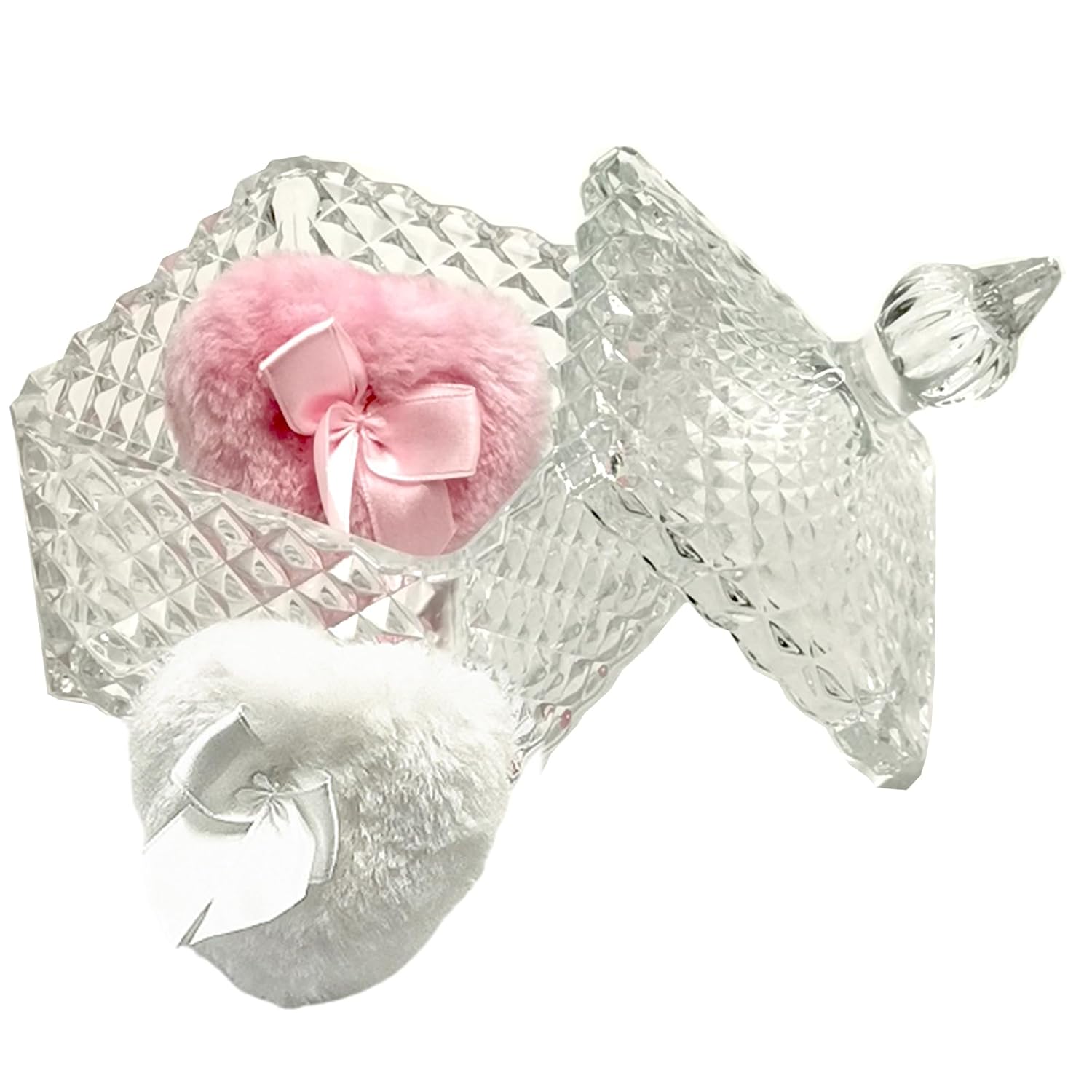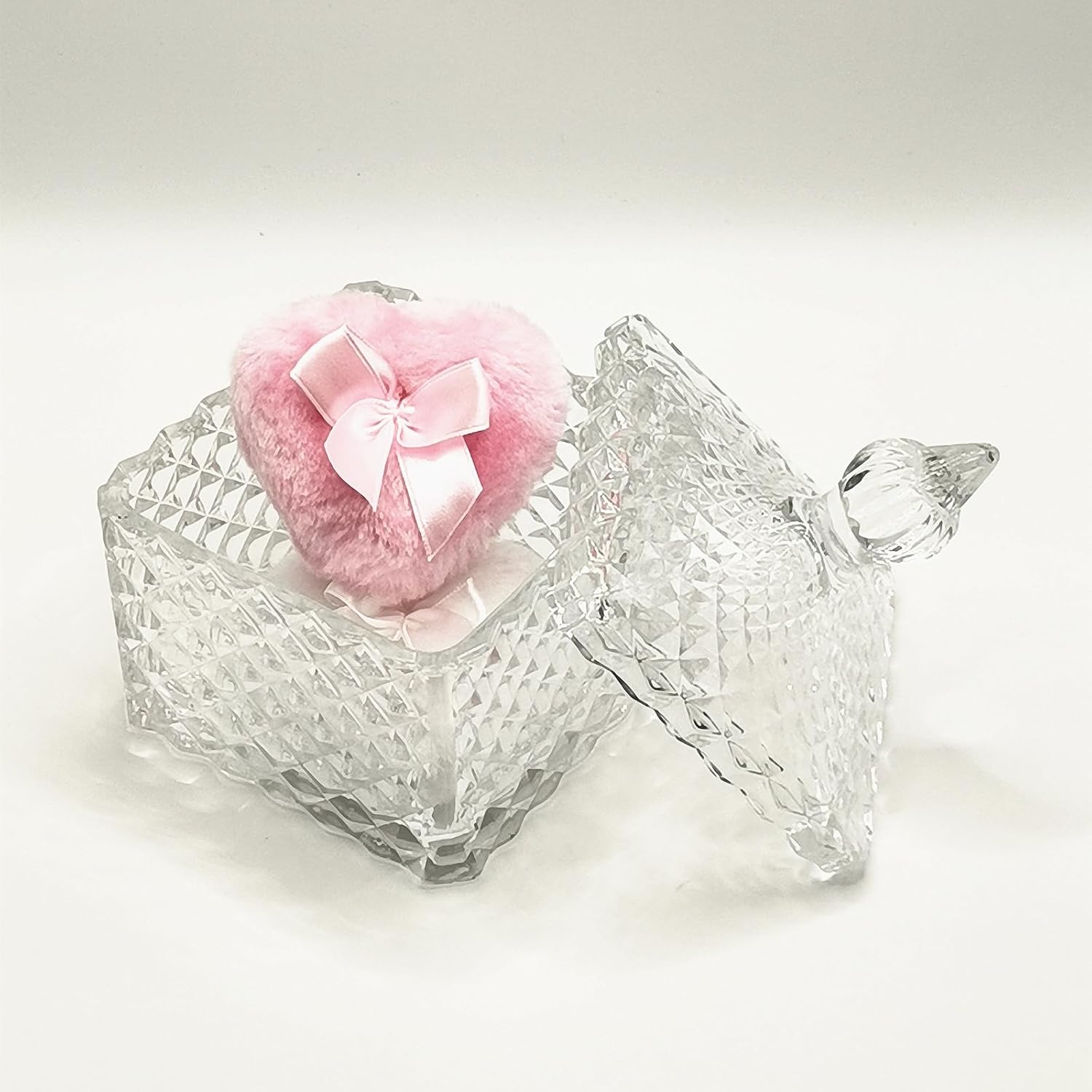 • 【You Will Get】 1 x Pink Glass Powder Puff Box with Reusable One White Puff and One Pink Puff. Transparent glass material with heart shape design, both aesthetics and ritual, suitable for gifts or makeup table decorations. The puff is soft and reusable, wet and dry use