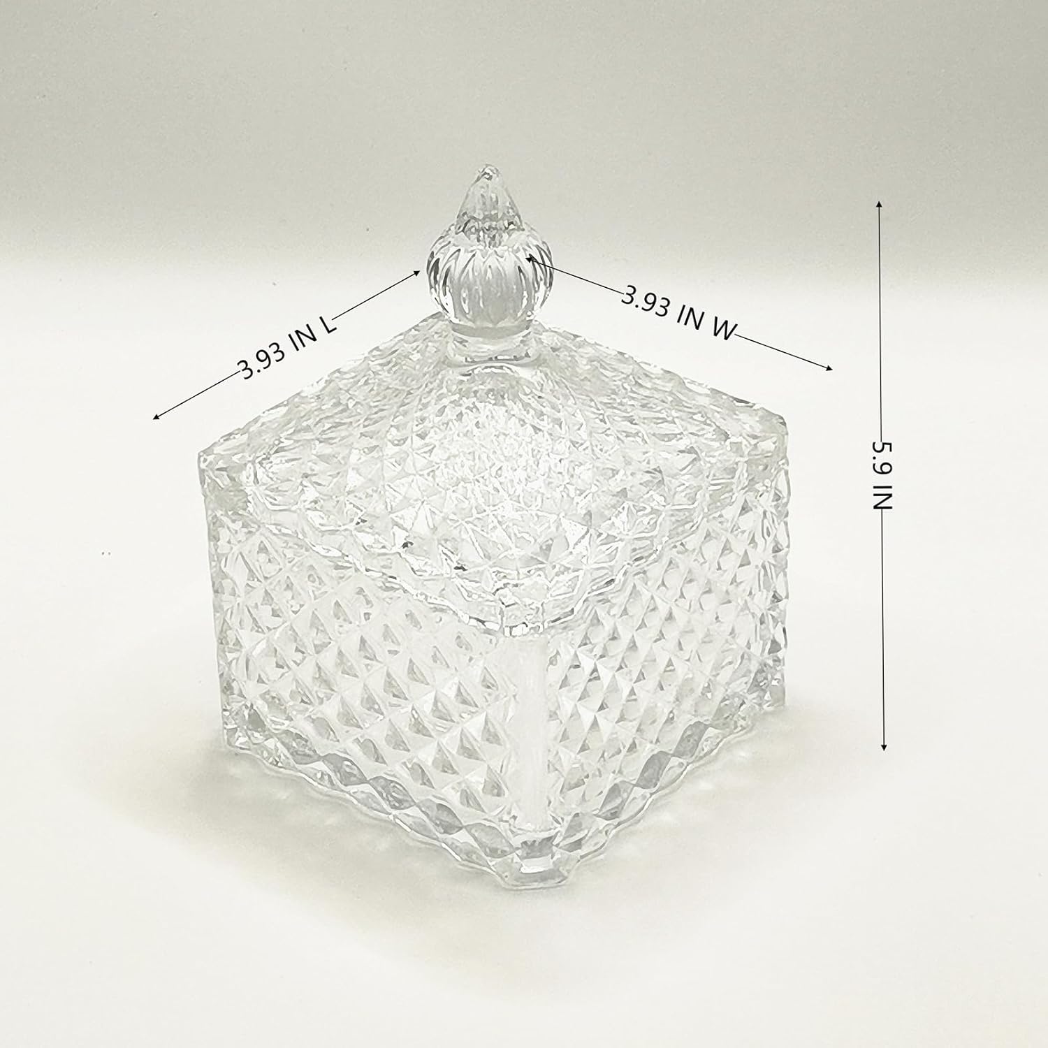 • 【Unique Design】This classic glass jewelry box has delicate and lovely beautiful embossed pattern, which makes you look bright, this powder puff case measures 3.93 inches L x 3.93 inches W x 5.9 inches H, designed for vanity table storage and decoration