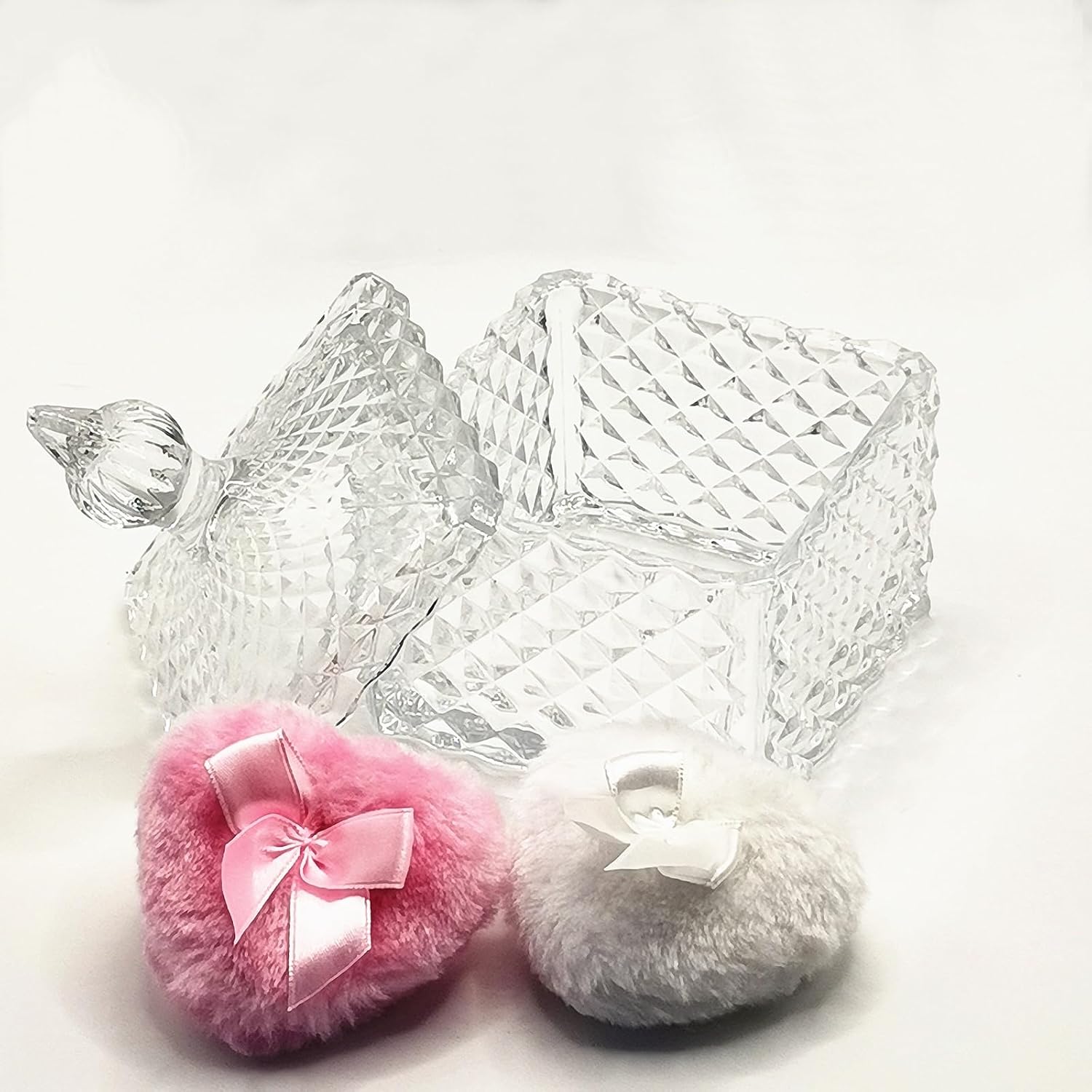Body Powder Puff and Container - Glass Dusting Powder Container with 2 Soft Puffs Vintage Powder Puff Case for Women & Girls (3.93x3.93x5.9 H in)-GRB009-Transparent