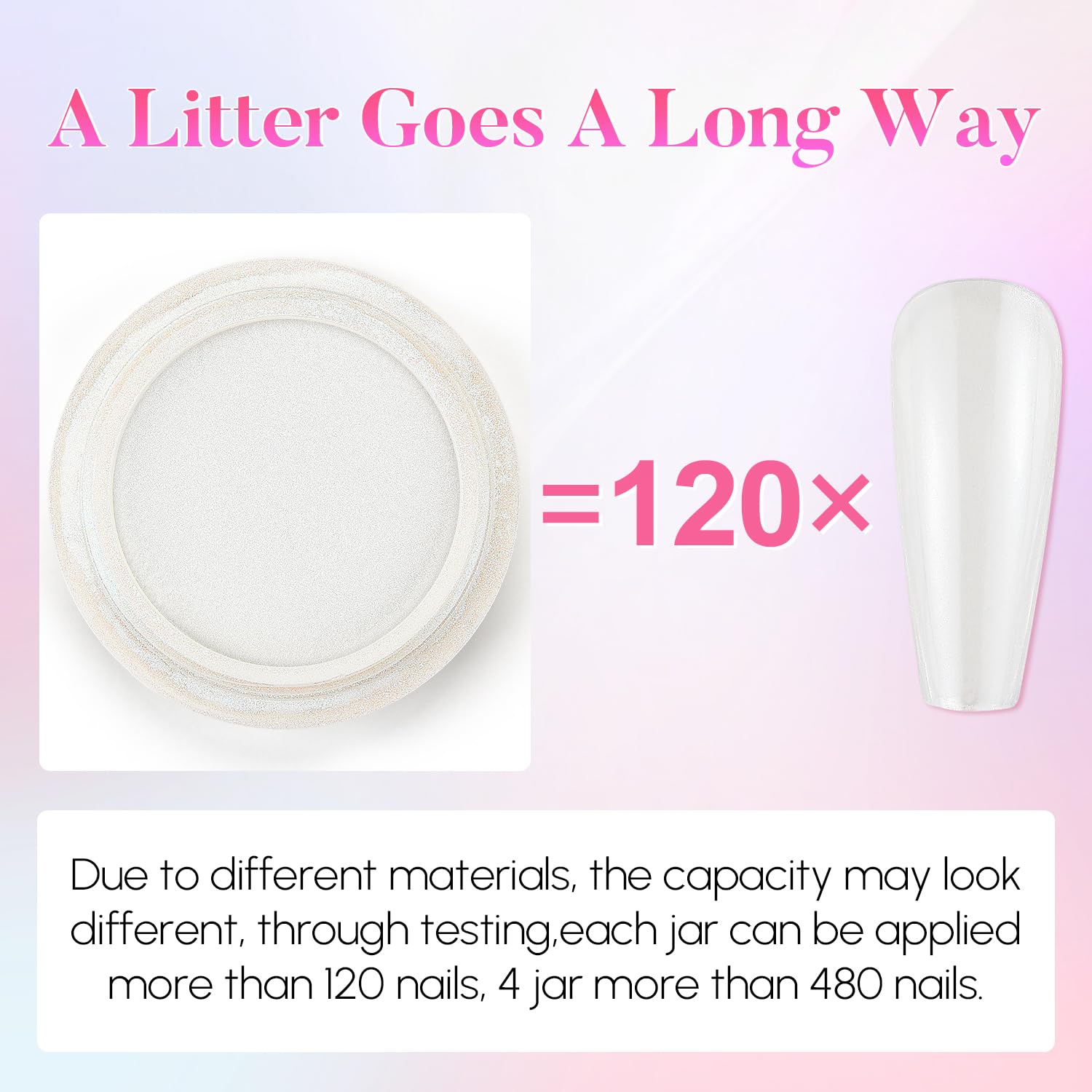 AIMEILI Pearl Chrome Nail Powder, Vegan, Cruelty Free, 4 Colors Aurora Metallic Holographic Mirror Effect Nail Art Pigment Iridescent Shell Glitter Nail Art