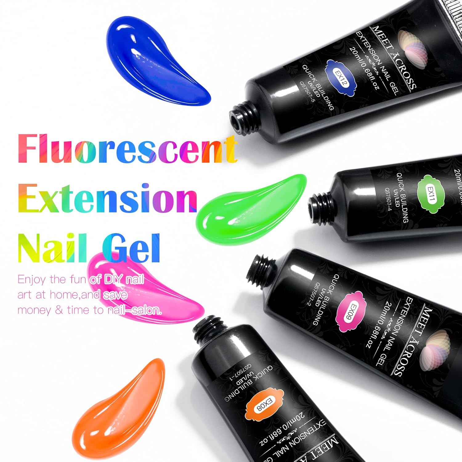 • Neon Extension Gel Nail: This neon gel builder kit for nail extension comes with 6 colors, halloween pink neon green yellow orange shades perfect for all seasons and daily colors. Our poly nail gel kit can be shaped to overlay, extend, strengthen and repair your nails, make them natural and good-looking.