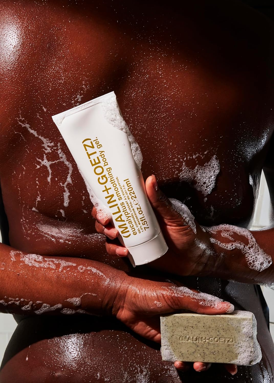 • a triple-milled foaming exfoliating bar infused with our signature eucalyptus scent.