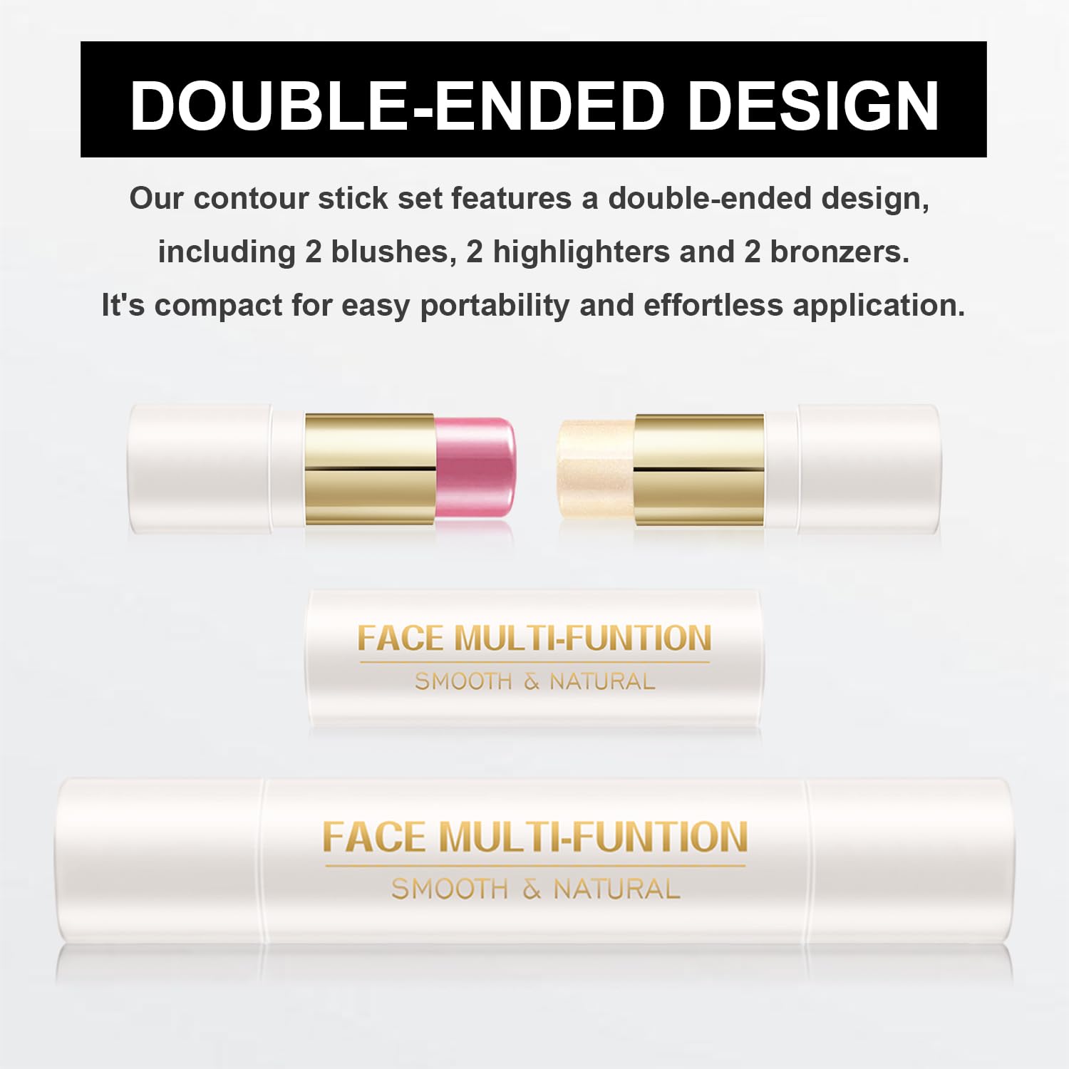 • 【Dual-Ended Design】Replace 6 makeup products with 3 double-ended sticks. Sculpt cheekbones, brighten under-eyes, contour nose, and blush cheeks with one portable tool – perfect for travel touch-ups.