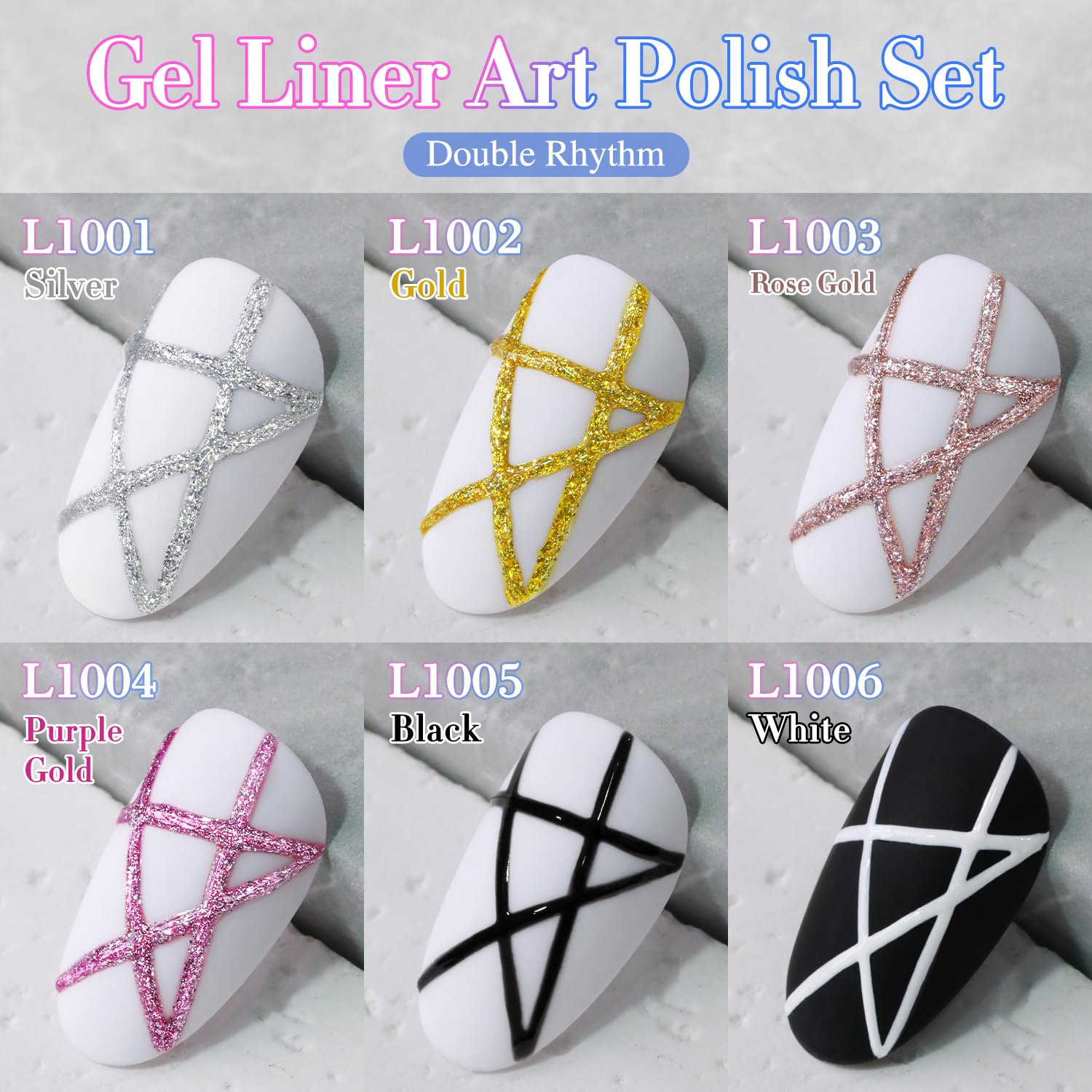 Double Rhythm 6 Pcs 15 ML Gel Liner Polish Nail Art Set Chrome Metallic Glitter Soak Off Gel Polish Kit Nail Art Manicure Salon DIY at Home for Women (Gold Silver Black White-T6-52)