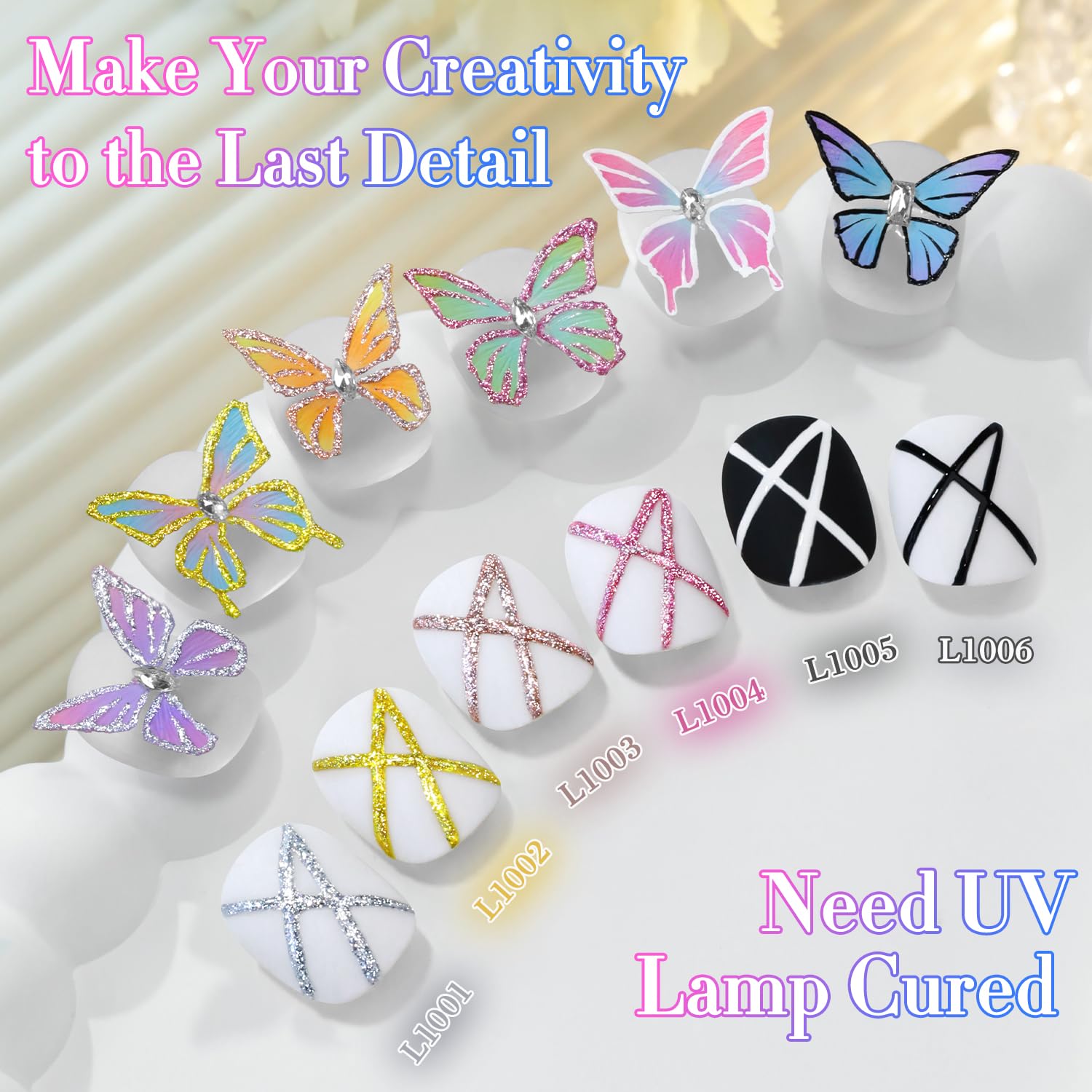 • 6 Pcs Gel Liner Art Polish: 6pcs 15ml gel polish for all season, will come with color swatches.These gel polish kit need to be cured under UV or LED Lamp for 60-138s. Must apply with Base Gel and Top Coat. Please shake the bottle or warm it with hot water before use, to acheive a better effect.