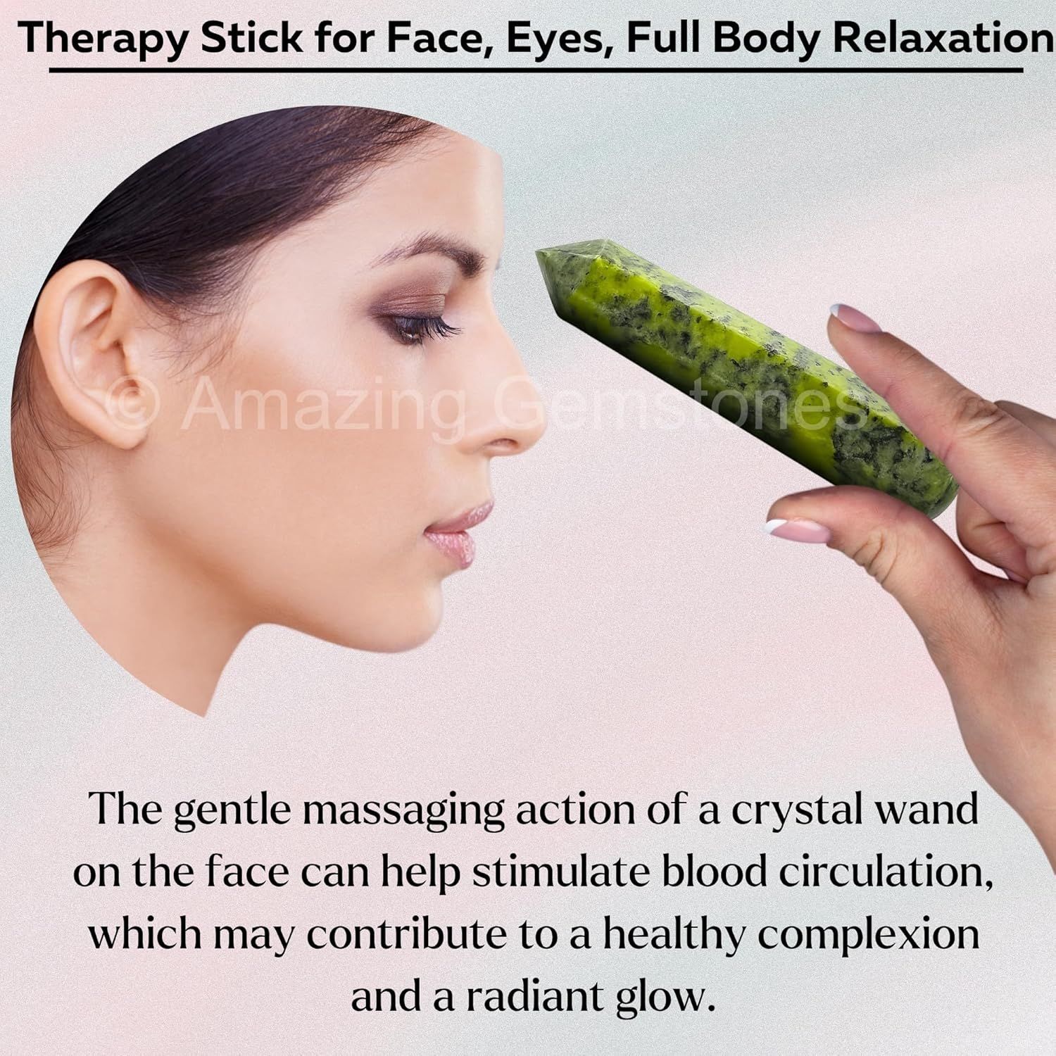 Amazing Gemstone Green Jade Crystal Wand Massage Stick - Pelvic Wand Gua Sha for Adults - Crystals and Healing Stones Massage Wands for Adults Gifts (Pointed)