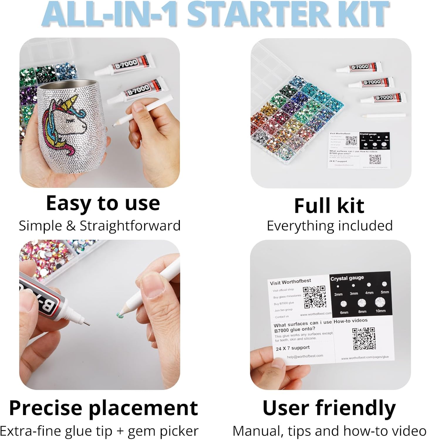 • B7000 Clear Glue for Gemstones -- B7000 glue has strong adhesion and dries clear, waterproof when dried, non-toxic and harmless to the skin. The glue has a precision needle for easy application, they can be applied precisely