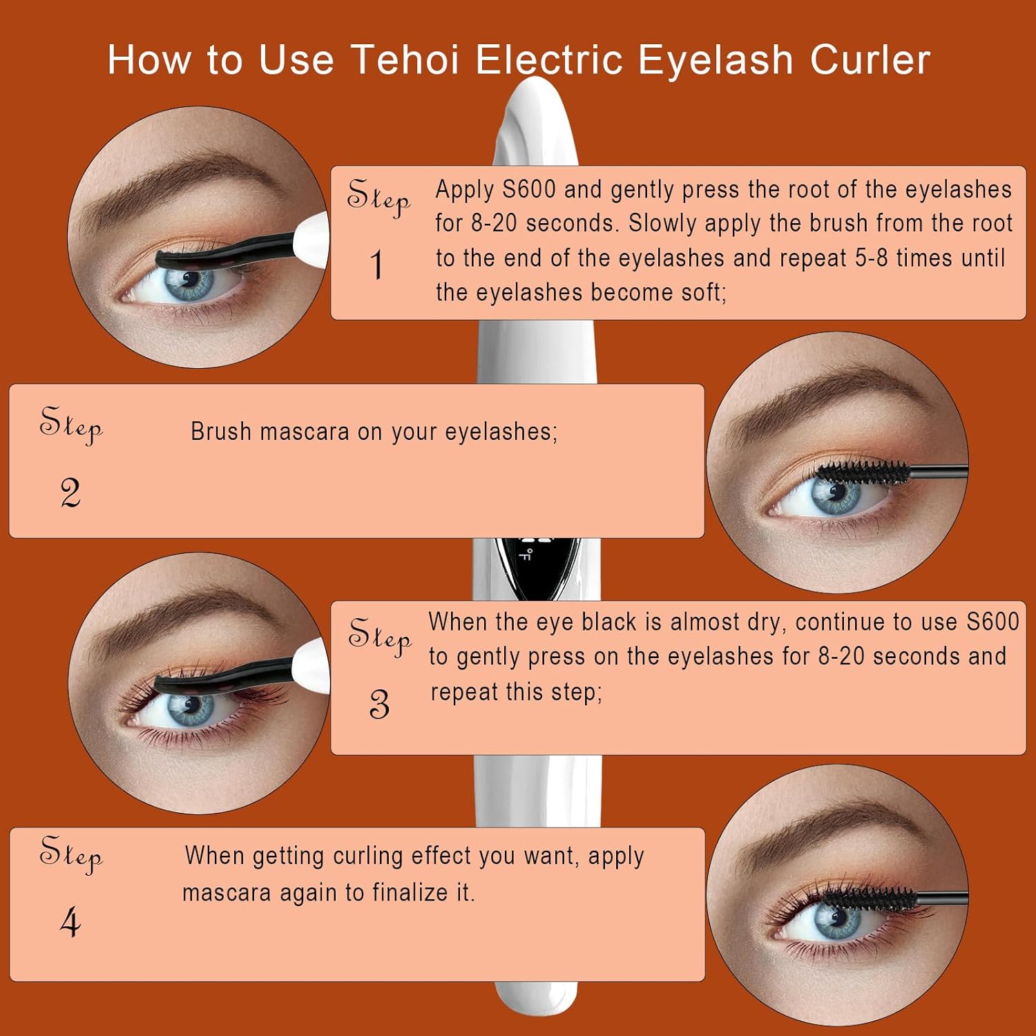 • 【Rapid Heating & Natural Long-Lasting Curls】Heated Eyelash Curler – Ditch clunky traditional curlers! Our heated eyelash curler heats up in just 10+ seconds—no tedious waiting, ideal for quick eye makeup prep. Its uniquely curved head fits your eye’s natural contour, quickly shaping flawless natural curls to enhance your look. Need more definition? Simply increase the temperature for better results, no lash damage. Pair this eyelash curler heated with mascara: it effortlessly separates lashes to avoid clumping, locking in a 24-hour long-lasting natural curl. From morning commutes to evening outings, your lashes stay perfectly curled, giving you a stunning, eye-catching gaze all day.
