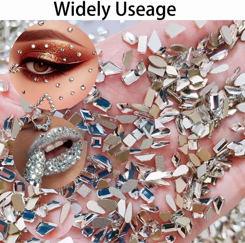 • 【60 Pcs Big Silver Rhinestones with 1290 Pcs Silver Flatback Round Stones 】ALOCIAM shiny diamonds stones for nails have 12 kinds of shapes, like heart rhinestones, drop rhinestones, rhombus rhinestones, oval rhinestones,Horse eye rhinestones... etc each 5pcs, total 60pcs big rhinestone. And 1290 pcs Silver flatback round Stones.1.6mm small diamond*450pcs,SS6 flatback rhinestones*280pcs,SS8 flatback rhinestones *220pcs, SS10 flatback rhinestones*150pcs, SS12 flatback rhinestones.