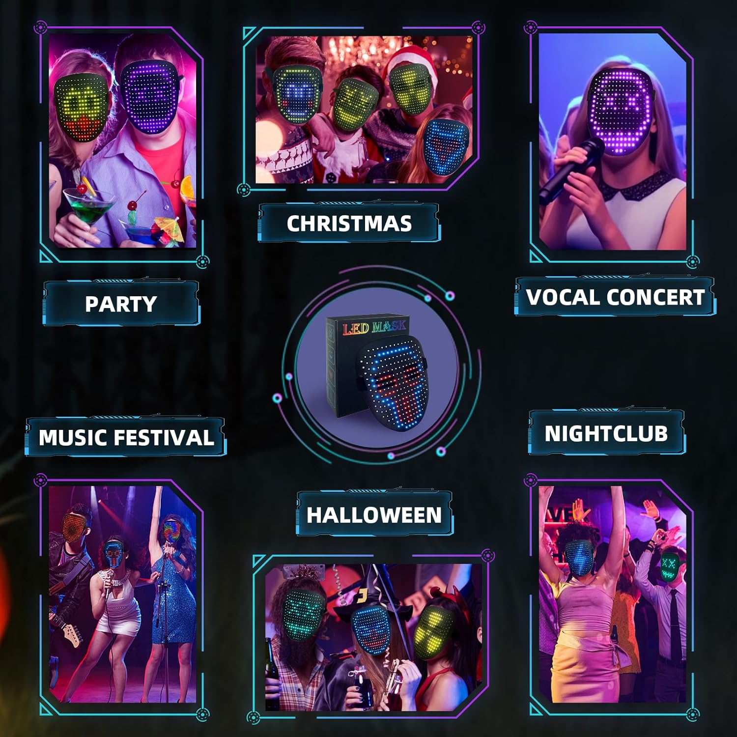 • 50 Vivid Display Patterns: This led mask for kids provides 25 dynamic modes and 25 static images for stunning visual effects. This LED full-face mask is perfect for costumes and role-playing, and you can easily switch patterns to attract everyone's attention.