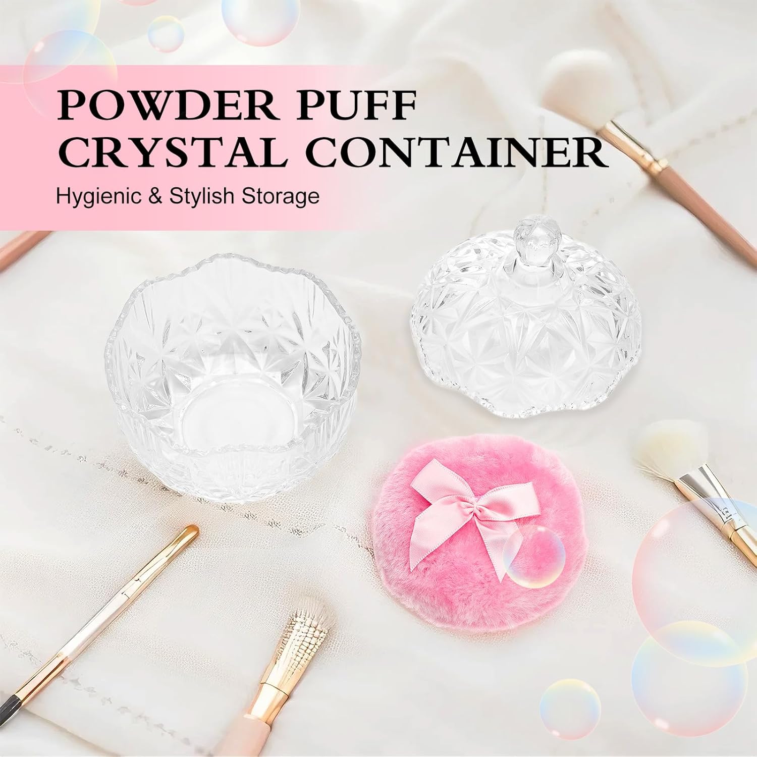 • Gorgeous Design, Premium Quality: This body powder puff and container set features 1 ultra-soft, skin-friendly powder puffs and a crystal-clear glass powder puff container. With a vintage-chic look, it adds elegance to your beauty routine. Note: Not a sealed container