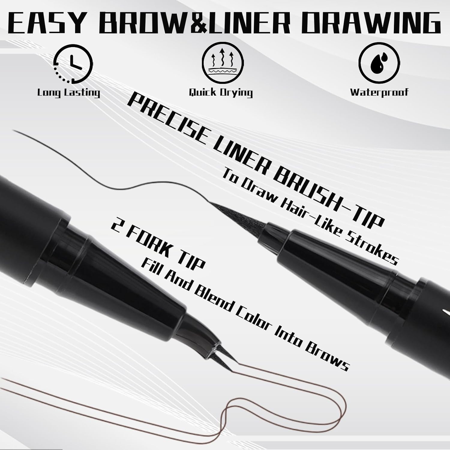 • 【Long - Lasting&Waterproof】Our waterproof eyebrow pen eyeliner set is formulated to last all day. It won't smudge or fade, even in hot and humid conditions.Whether you're sweating at the gym or caught in the rain,the smudge - proof and waterproof formula ensures that your eyebrow and eyeliner stay intact. You can trust this set to keep your makeup looking fresh and perfect from morning till night. This liquid eyebrow pen waterproof is ideal for daily wear and special occasions.