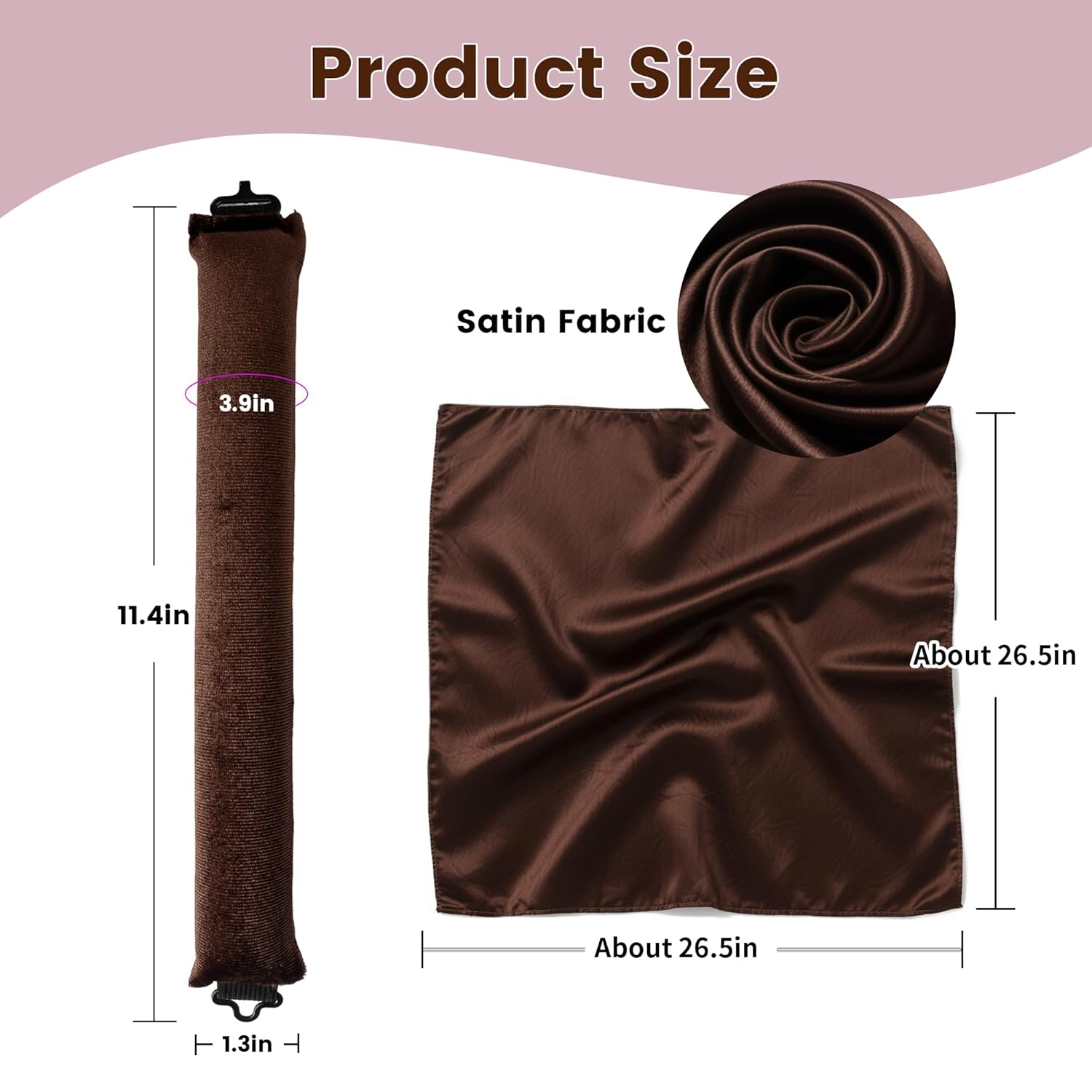 Heatless Curls Overnight Hair Curler - 4 Pcs Curling Rod to Sleep In, Velvet Hair Rollers with Satin Hair Scarf Girl's gift (Brown)