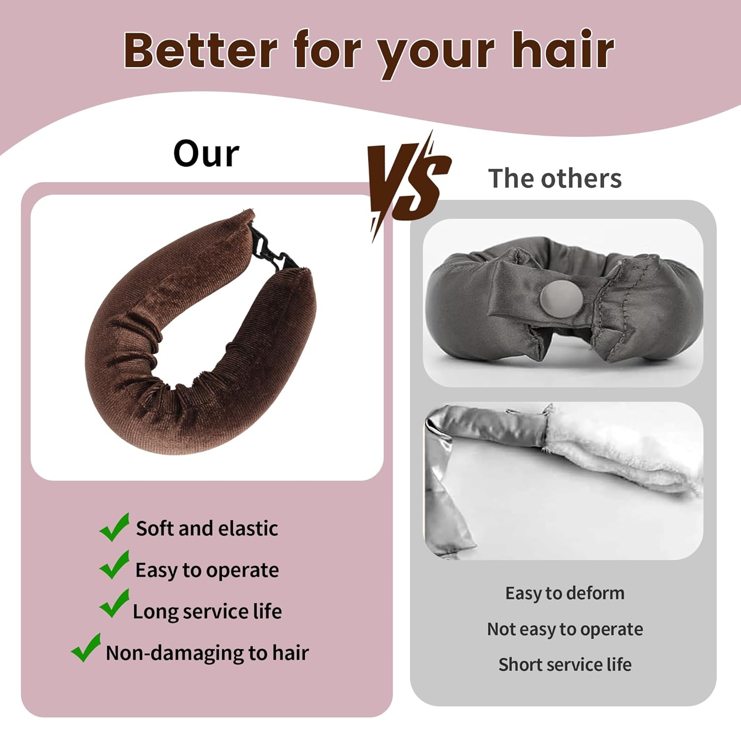 • 【HOW TO USE】 Our heatless hair curler do not rely on heated rollers, keep your hair slightly damp before use, wait for air-drying your hair after use to bring your own curling function, it is the most comfortable and easy styling tool for curly hair styling.