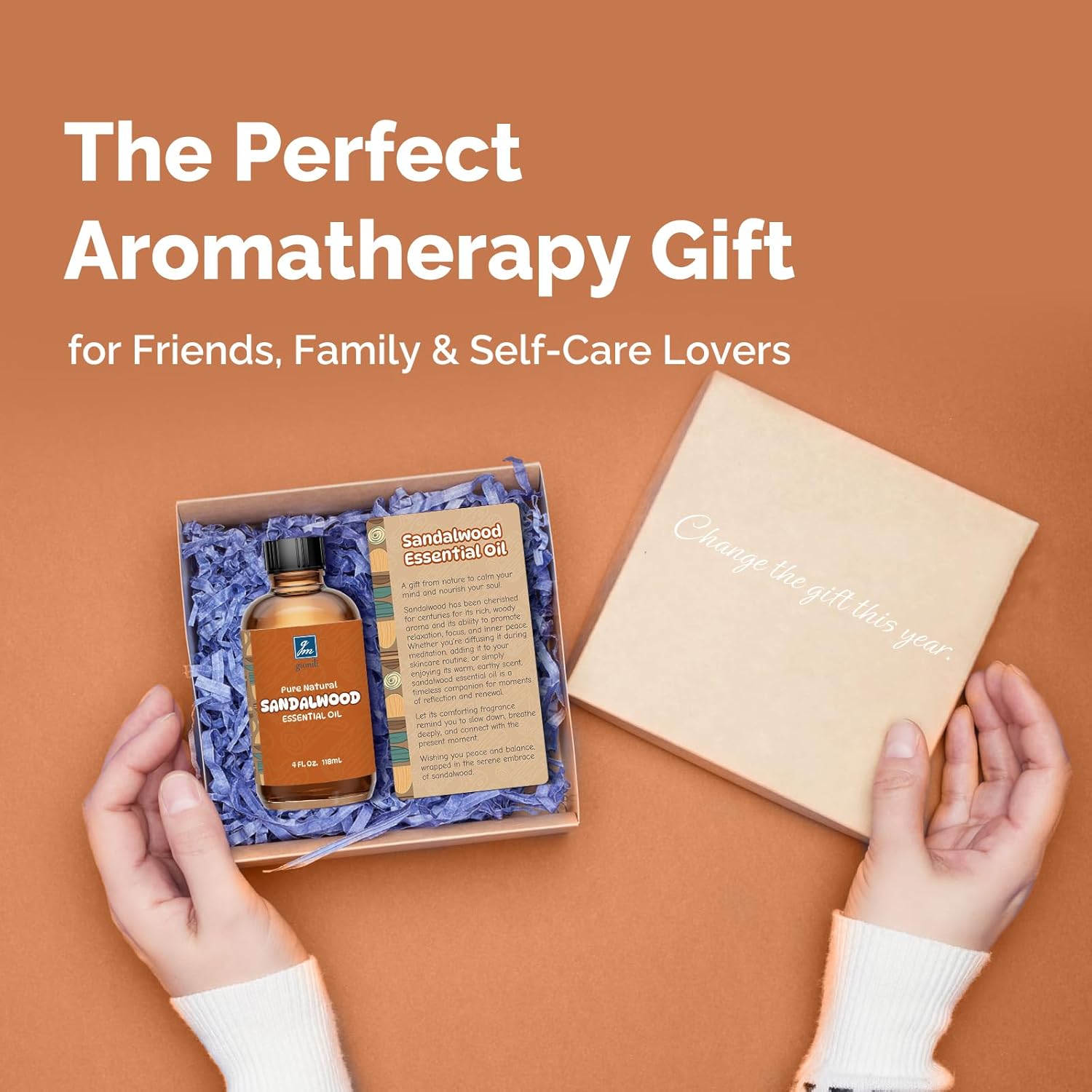 • 100% Pure Sandalwood Essential Oil: Premium 4oz sandalwood essential oil, steam-distilled for a warm, woodsy aroma. Perfect for diffuser, skin care, hair, and aromatherapy uses.
