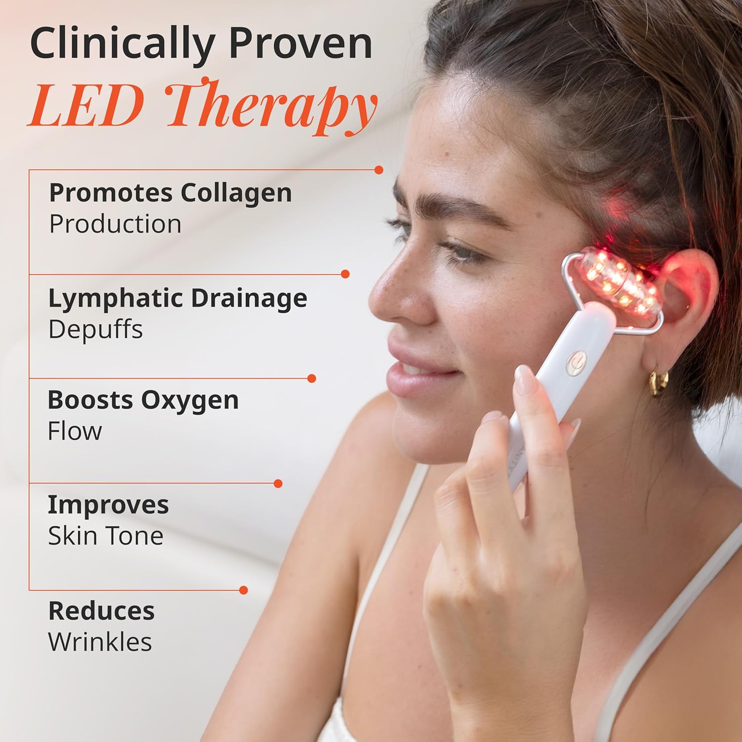 • SONIC LED FACIAL ROLLER WITH RED LIGHT THERAPY: Experience age-defying results with our patented Sonic LED Face Roller. The combination of red LED light and sonic vibration works together to reduce fine lines, wrinkles, and puffiness, delivering visible improvements.