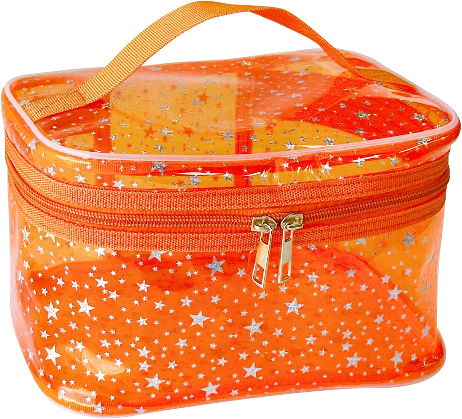 Holographic Makeup Bags Bulk,Clear Storage Bag Toiletry Pocket Portable Zippered Iridescent Pouch Waterproof Cosmetic Gift Bags for Women (Orange-L)