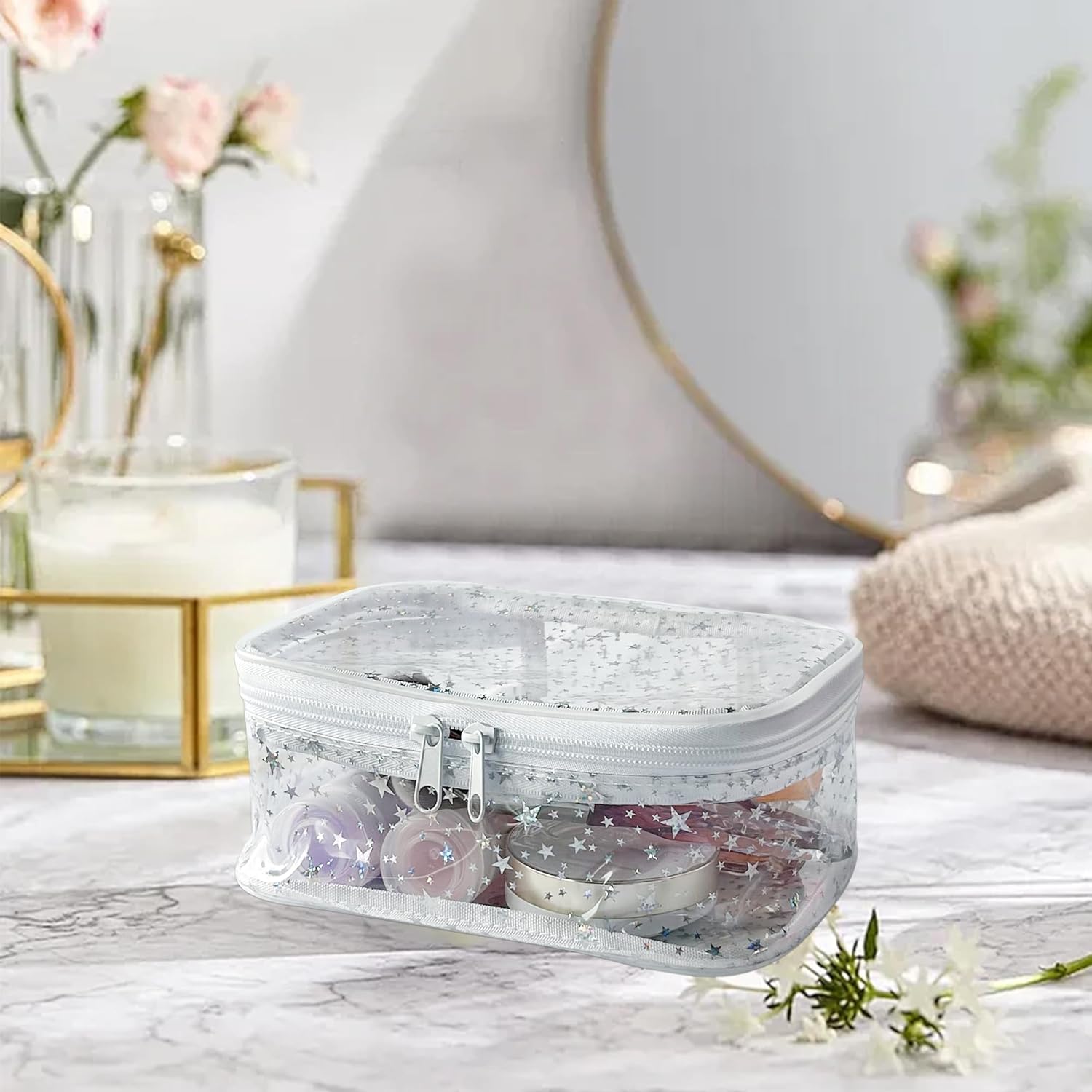 • 🌷【Wide Range of Uses】Our transparent holographic cosmetic bag can not only be used as a storage bag,waterproof bag,gift bag,frequently used item bag,but also can be used to store cash,glasses,keys,portable batteries,etc.This waterproof and dustproof tote makeup bag keeps everything safe and prevents liquid leaks
