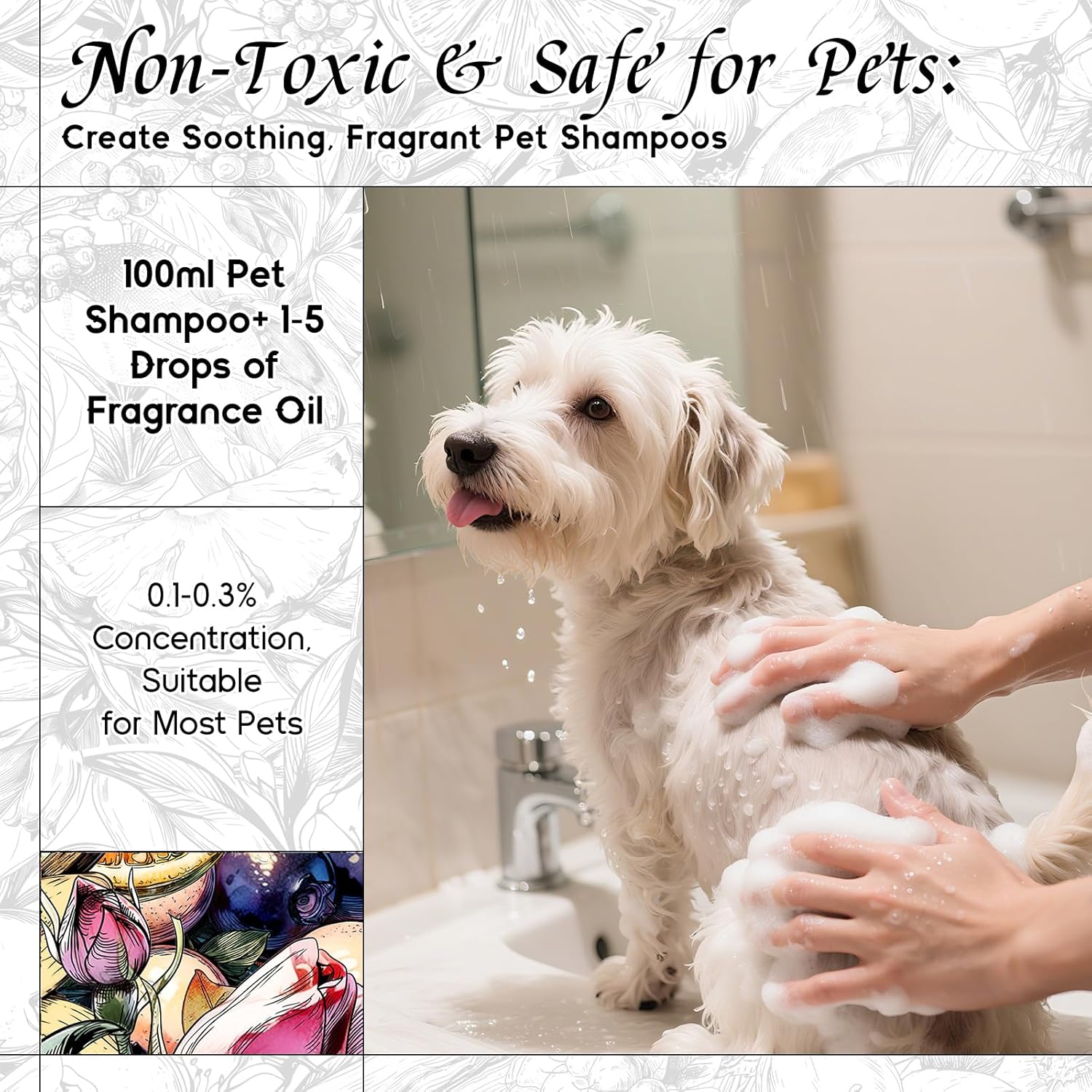 • Pet-Safe Formula: Crafted with a gentle formula that’s safe for your pets when diluted, great for use in DIY pet products like shampoos, paw balms, sprays, and more