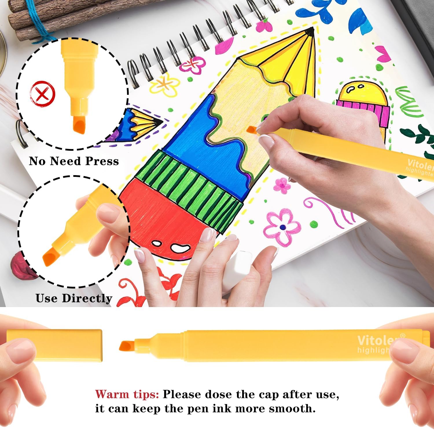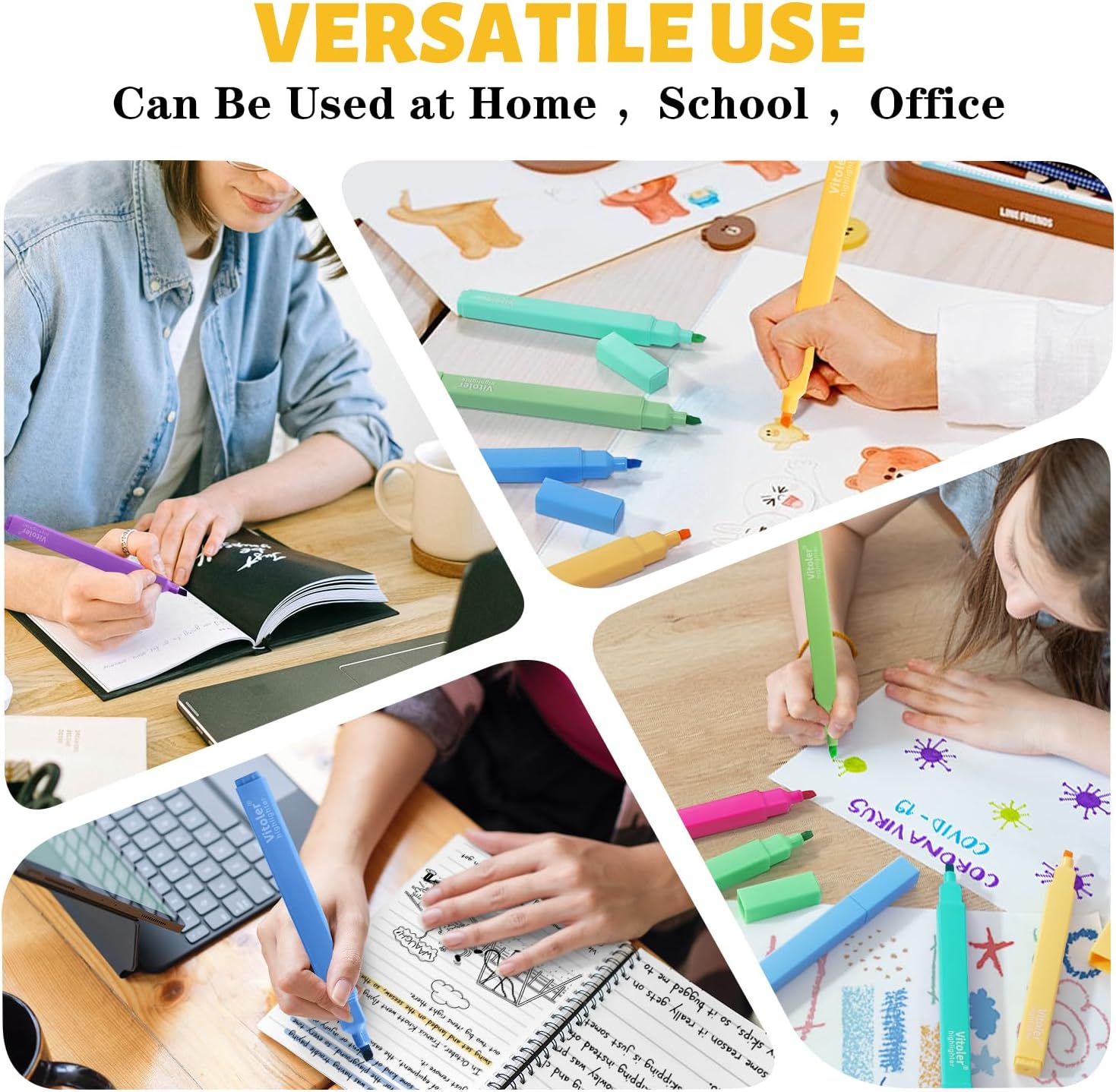 • Highlighters Bulk Easy to Hold: The pastel highlighter is designed with square shape,it’s comfortable and easy to hold, without a sore hand and don't roll around while using.
