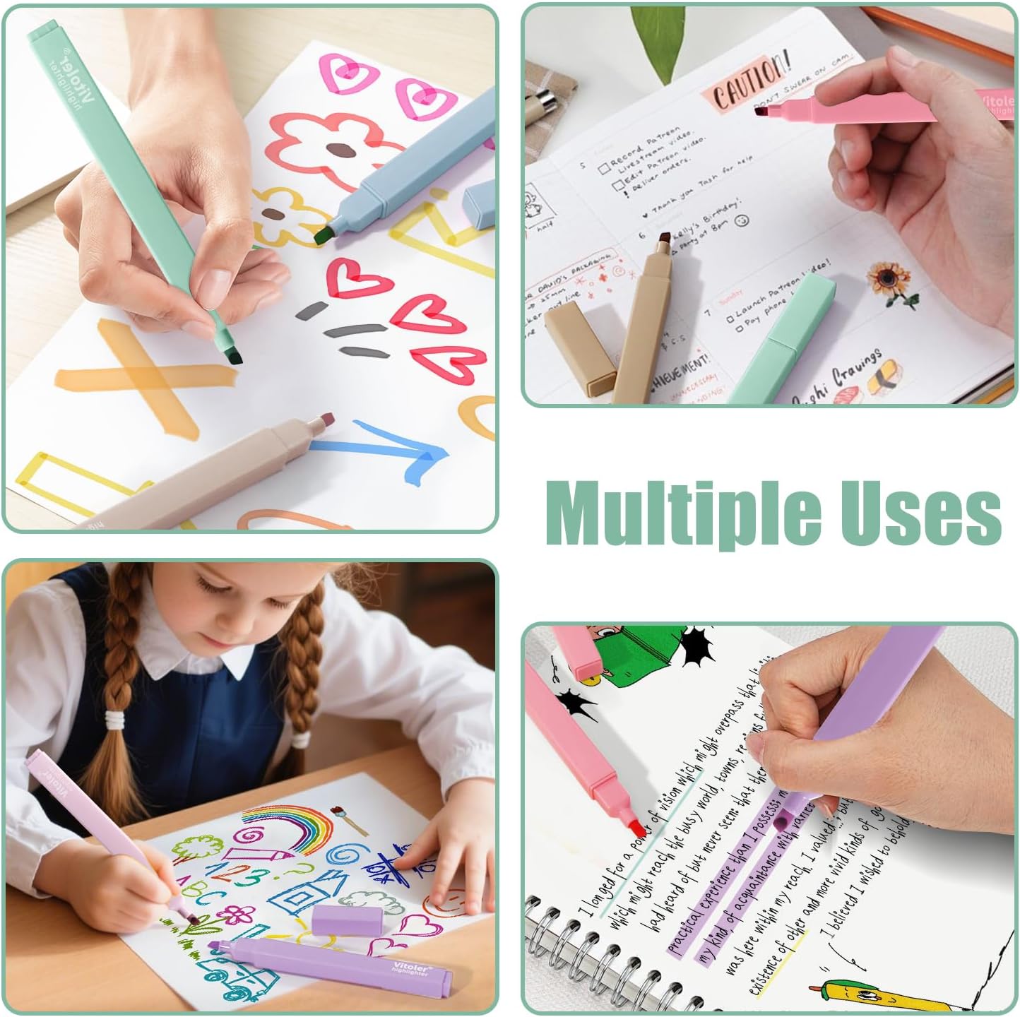 • Piochoo Highlighters Assorted Colors,Package includes 10 highlighters in non-neon, soft, and mild assorted colors.Aesthetic highlighters perfect for students,office workers, bible study enthusiasts, kids , teens girls or boys,women,college, teacher,