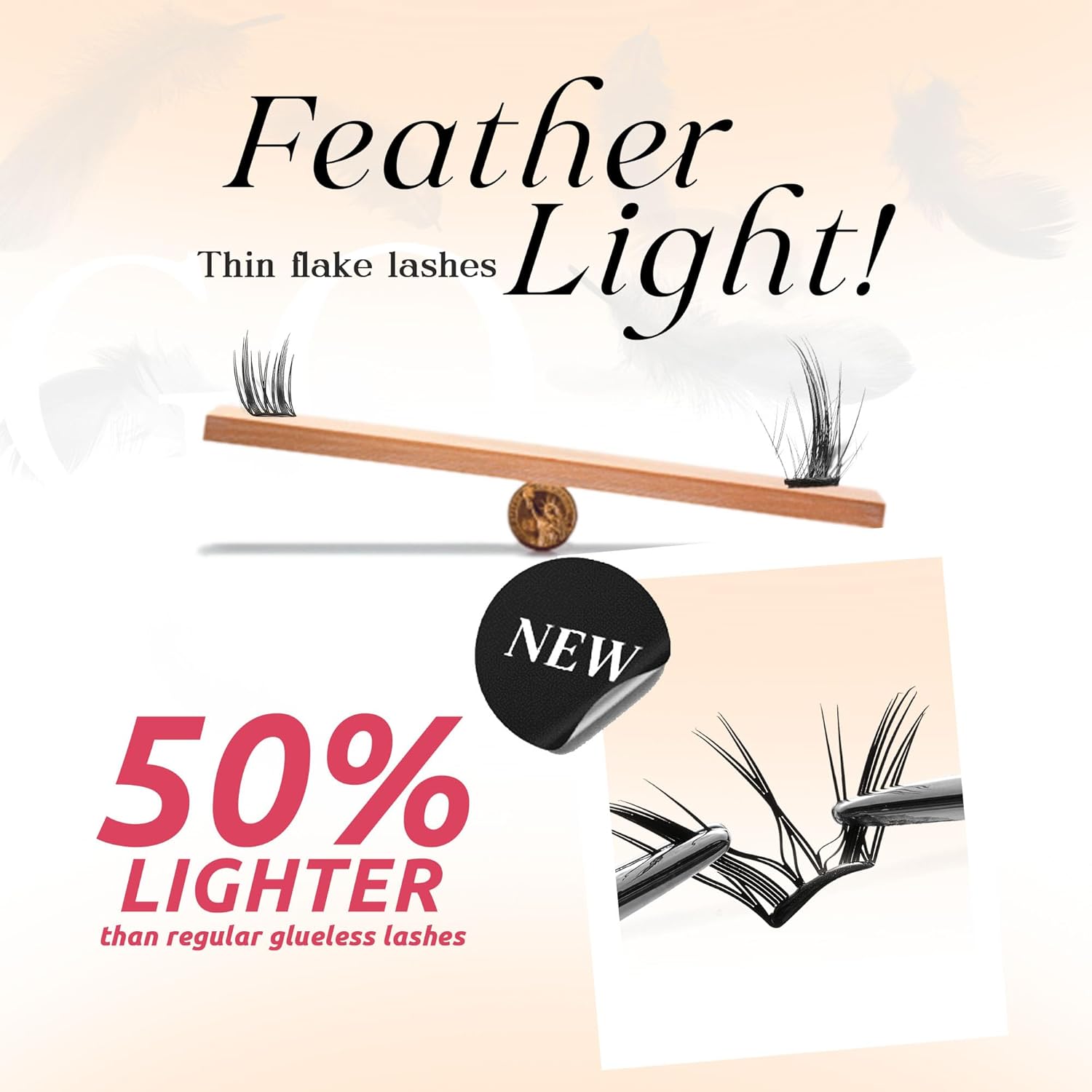 • Lightweight & Comfortable: Innovative one-piece molding technology, 50% lighter than traditional glueless clusters! Ultra-thin, featherlight lash flakes feel weightless all day.