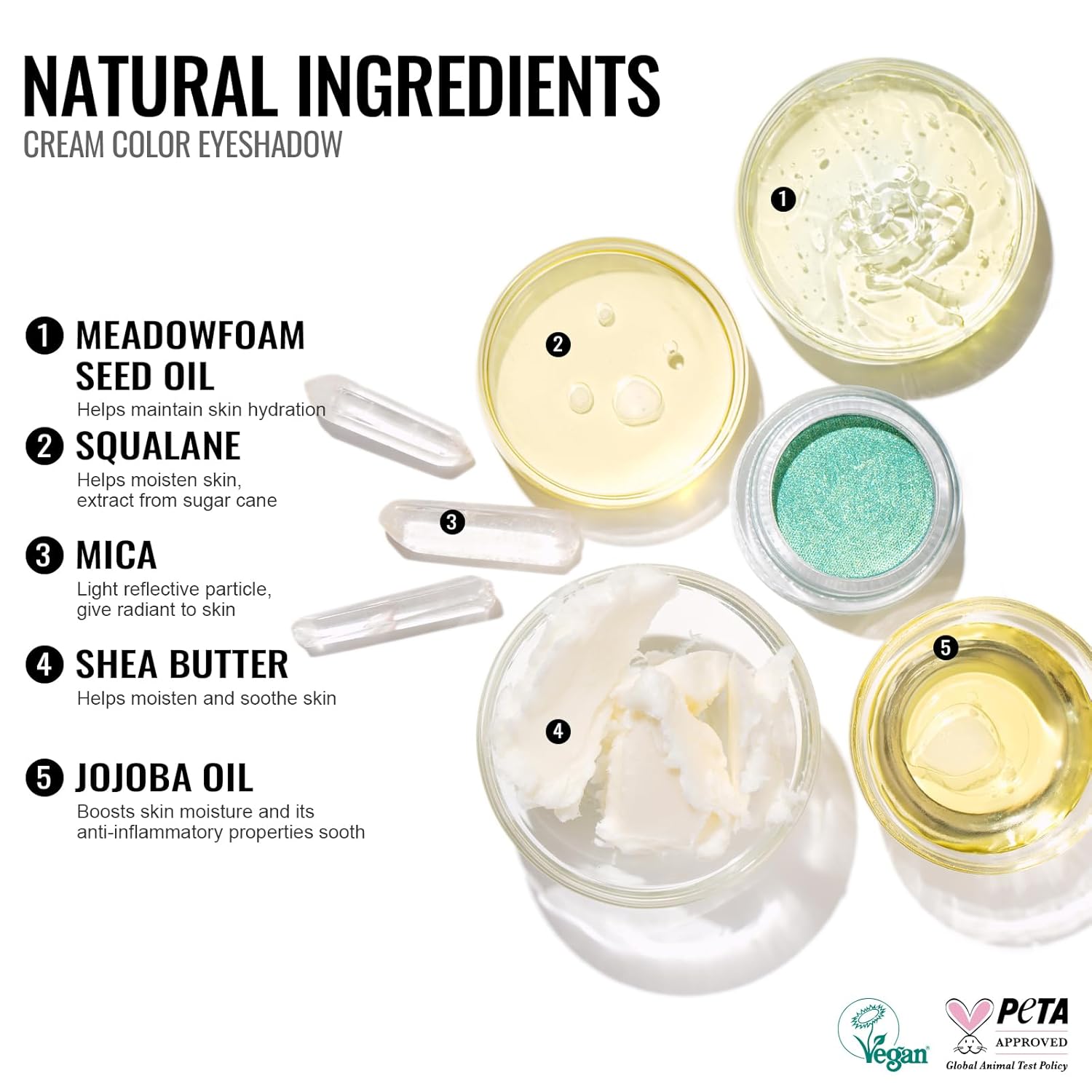 • Long Lasting: Creme Eyeshadow has long-lasting anti-sweat formula-maintains your eye makeup for up to 12 hours, keeping your makeup looking perfect all day long