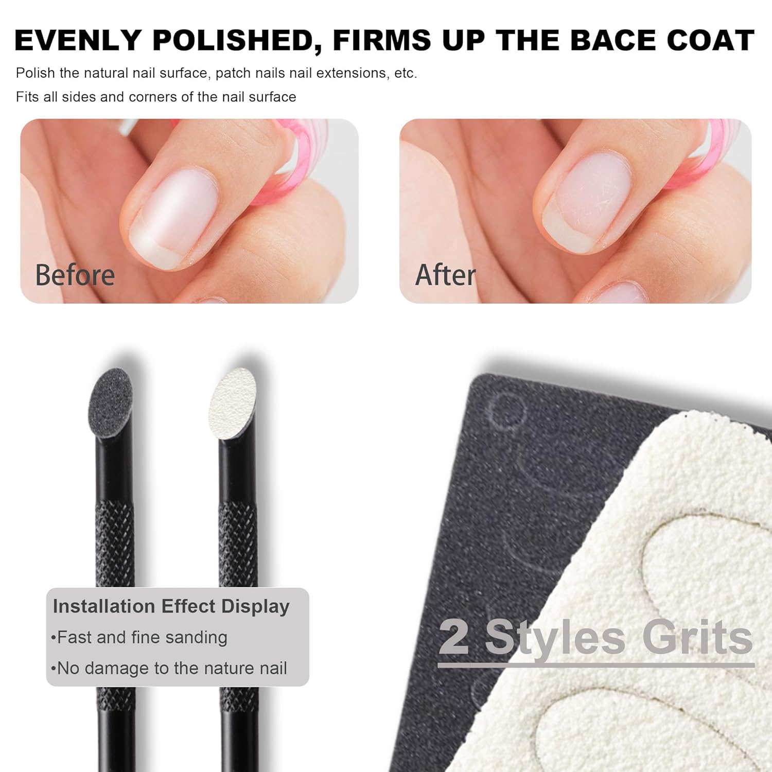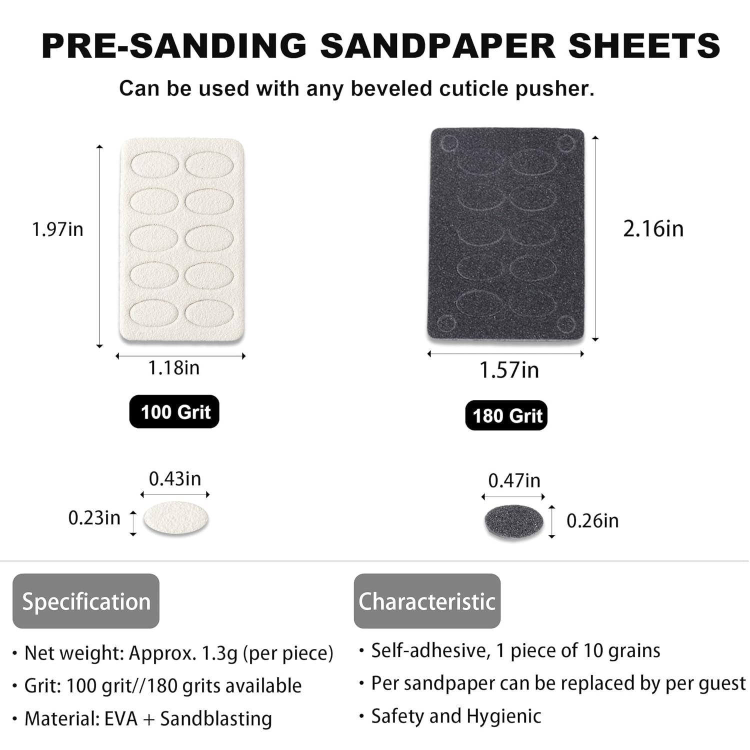 • Self-adhesive Mini Nail Files - The back of the nail file sandpaper is self-adhesive, very easy to use and replace, the mini sandpaper piece need to be used with cuticle pusher tool. These nail polishing sand papers are disposable, more healthy and hygienic.
