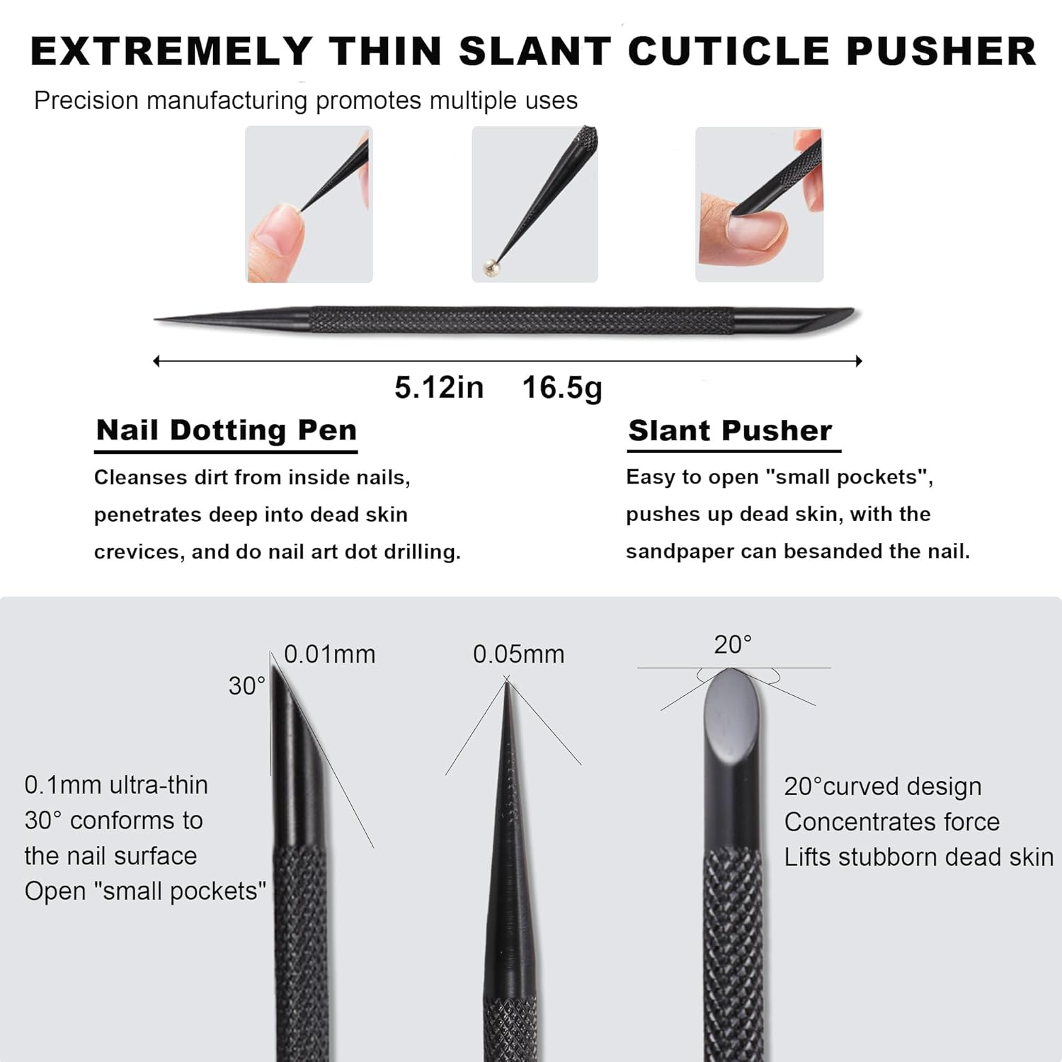 • Classic General Purpose - The cuticle nipper has effective 7mm jaw cuticle nipper design for precise cutting of hangnails and ragged cuticles. Loop pusher can push up cuticles easily and remove polish gel, and the slant pusher easily open the "small pockets" and can use with sandpaper for filing nails. Pointed cuticle pusher is effective in cleaning hard-to-reach places around and under the nail or nail dotting pen, can use with nail polish cleaning cotton to remove excess nail polish glue.