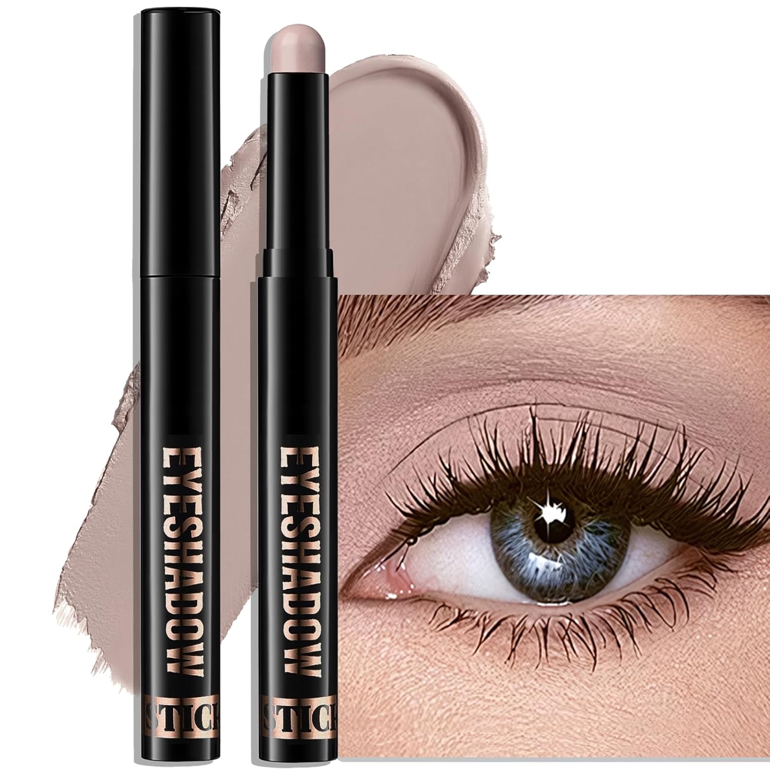 Eyeshadow Stick Light Taupe, Matte Cream Eye Shadow Stick Waterproof Nude Neutral Eyeliner Brightener Pencil Crayon Long-Lasting Eye Highlighter Makeup for Older Women Easy to Use High Pigmented