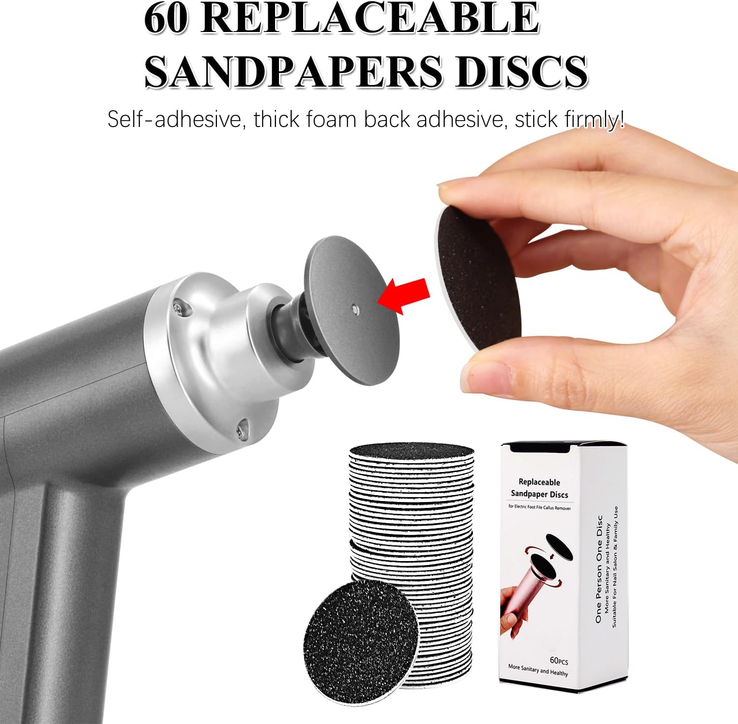 • 60PCS FOAM ADHESIVE BACKING SANDPAPER: It comes with 60 replaceable sandpapers, self-adhesive, thick foam backing, so it will stick firmly to the electric foot file and won't fall off during operation. After use, it can also be easily removed from the machine.