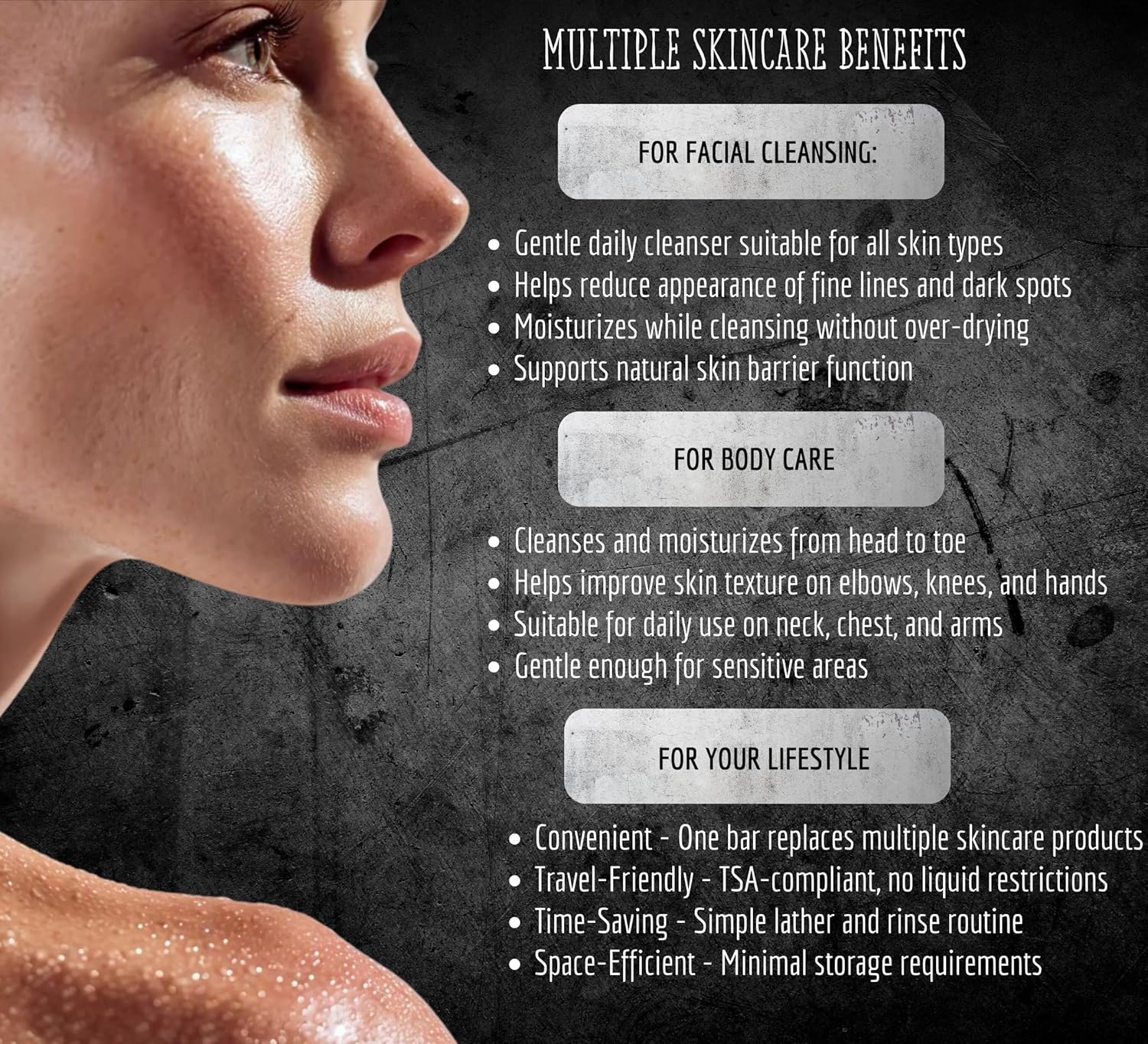 • FACE AND BODY CLEANSING SOAP - Suitable for cleansing face, neck, hands, and body. Helps reduce the appearance of dark spots, fine lines, and uneven skin texture while providing gentle daily cleansing for all skin types