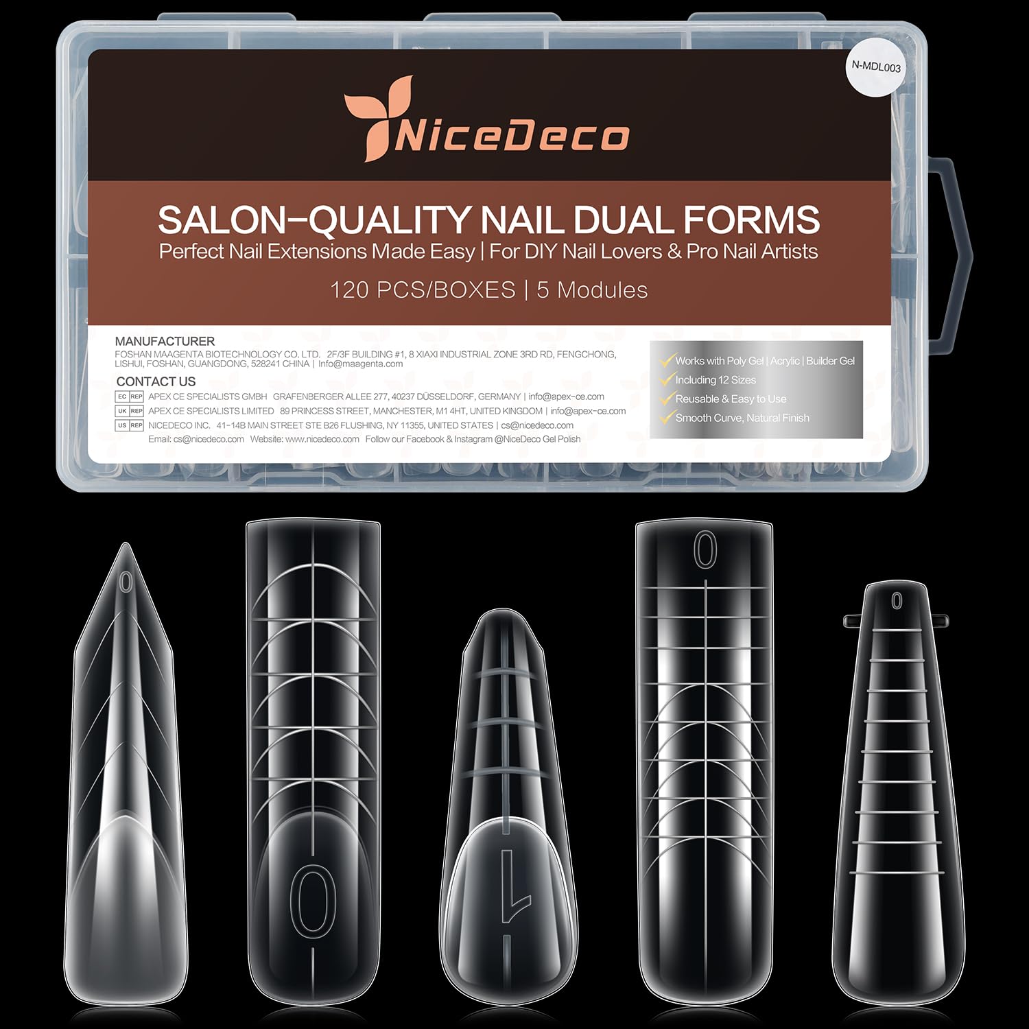 • Versatile Dual Nail Forms Set: Includes 120pcs in 5 different style shapes with 12 sizes, making it easy to choose the perfect fit for poly extension gel dual forms. Ideal for home DIY use to create personalized nail tips for salon-quality manicures at home.