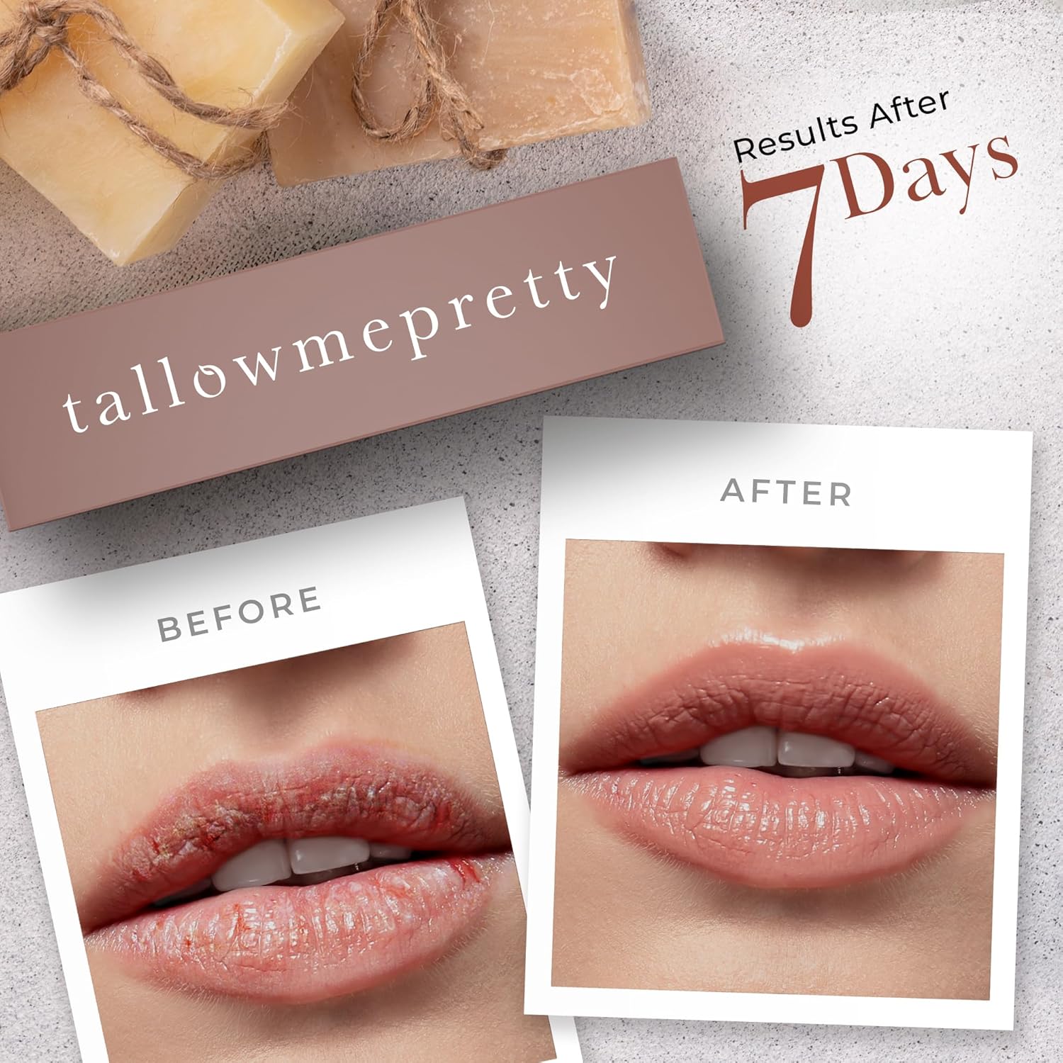• Round-the-Clock Care for Your Lips: Experience superior lip care with Tallow Me Pretty’s lip balms; They glide on smoothly, soothing chapped lips while forming a protective barrier that helps prevent common issues like peeling, cracking and inflammation