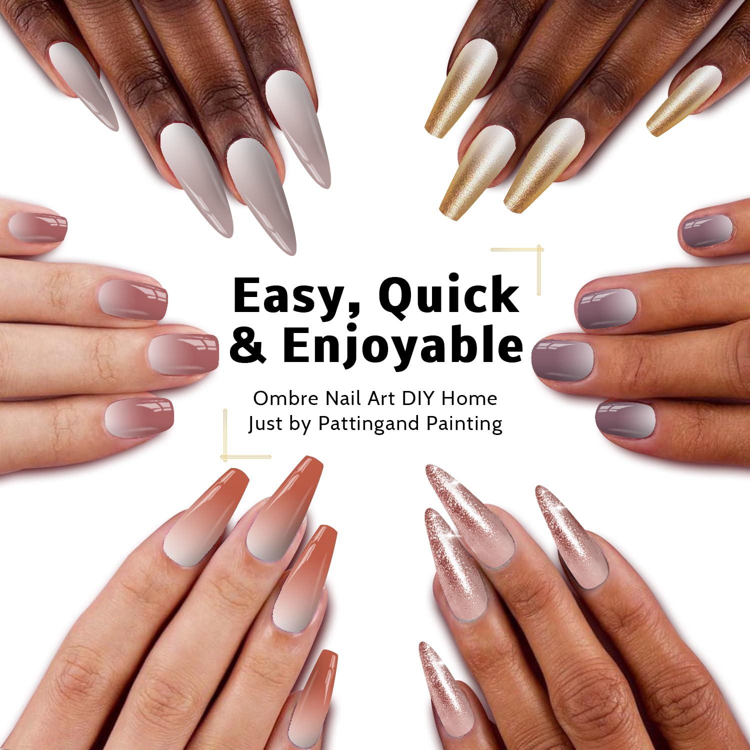 • 【EASY USE:】All steps are the same as normal UV/LED nail gel: 1.Clean and Prep; 2. Base coat and cure. 3. Apply color gel and cure. 4. Top coat and cure. 5. Clean nails and apply oil. Karroy ombre painting nail gel is easy to use: just grabbing a sponge and picking up your desire color, and patting sponge on your nail, you will get wonderful gradient coloring nails!