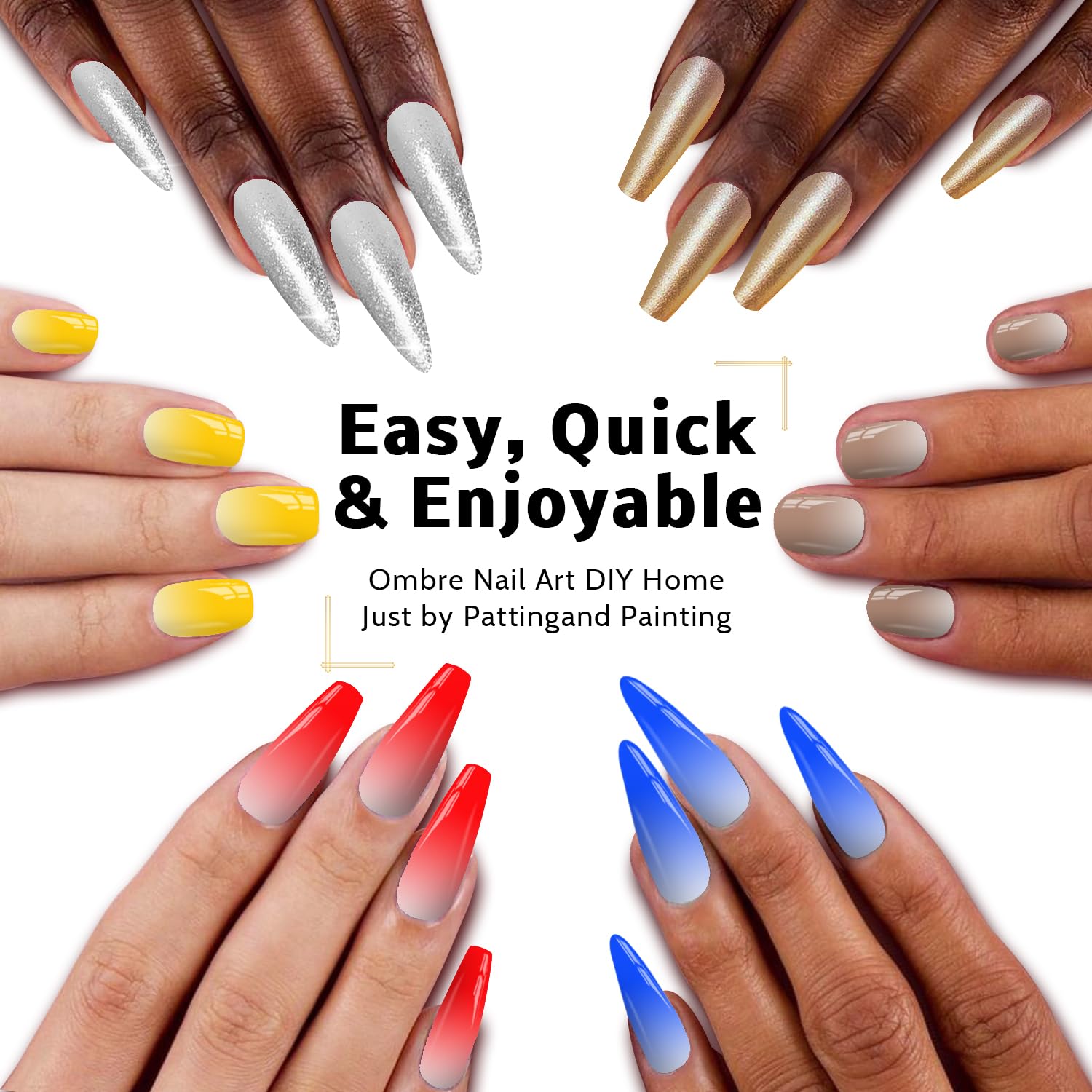 • 【EASY USE:】All steps are the same as normal UV/LED nail gel: 1.Clean and Prep; 2. Base coat and cure. 3. Apply color gel and cure. 4. Top coat and cure. 5. Clean nails and apply oil. Karroy ombre painting nail gel is easy to use: just grabbing a sponge and picking up your desire color, and patting sponge on your nail, you will get wonderful gradient coloring nails!