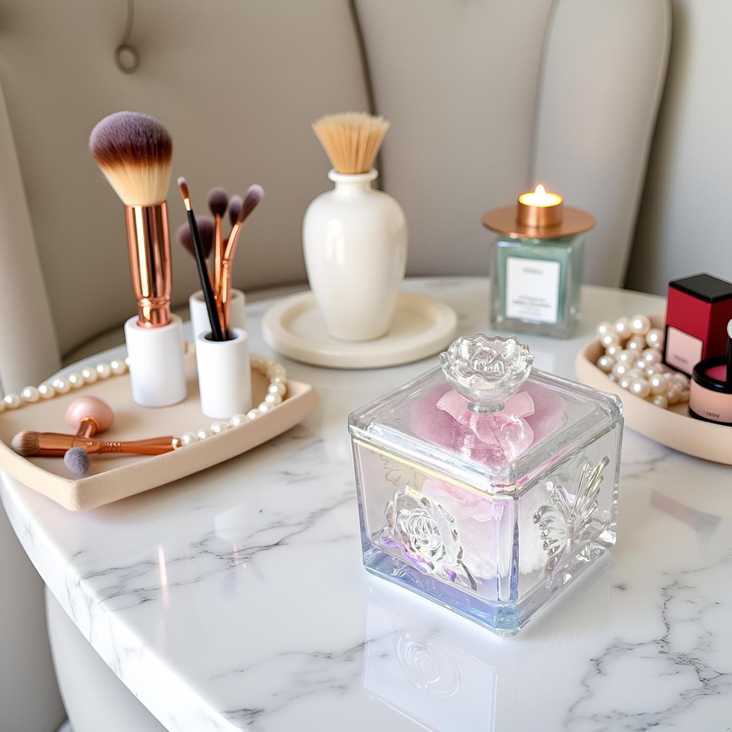 • 【Multi-Purpose Glass Box】This glass powder puff case can not only be used to store powder puffs, but also can be used to store earrings, rings, bracelets, hair accessories, knick-knacks, as well as other items in the dresser, bathroom and bedroom. It keeps your items away from dust and water, protects and decorates, and meets the needs of female users for cosmetic organization