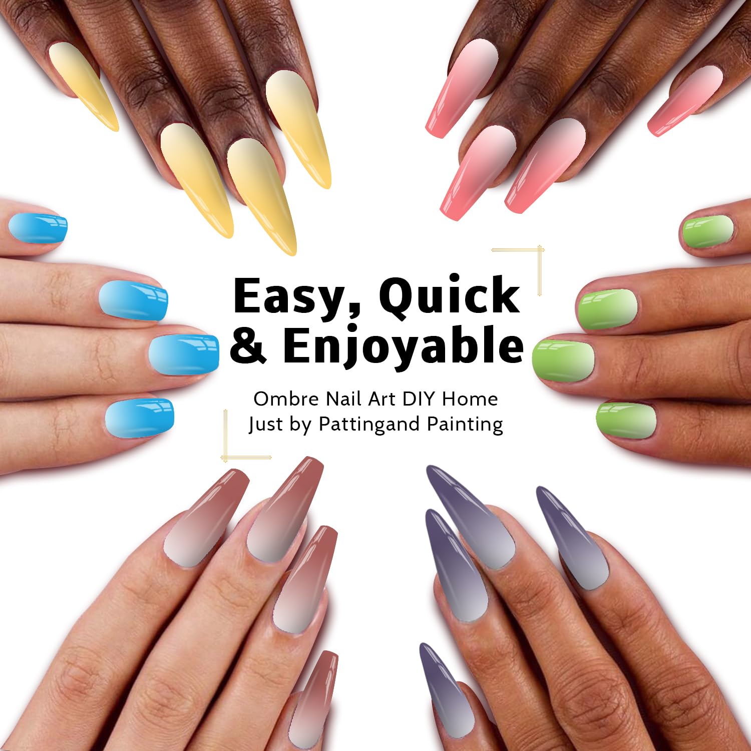 • 【EASY USE:】All steps are the same as normal UV/LED nail gel: 1.Clean and Prep; 2. Base coat and cure. 3. Apply color gel and cure. 4. Top coat and cure. 5. Clean nails and apply oil. Karroy ombre painting nail gel is easy to use: just grabbing a sponge and picking up your desire color, and patting sponge on your nail, you will get wonderful gradient coloring nails!