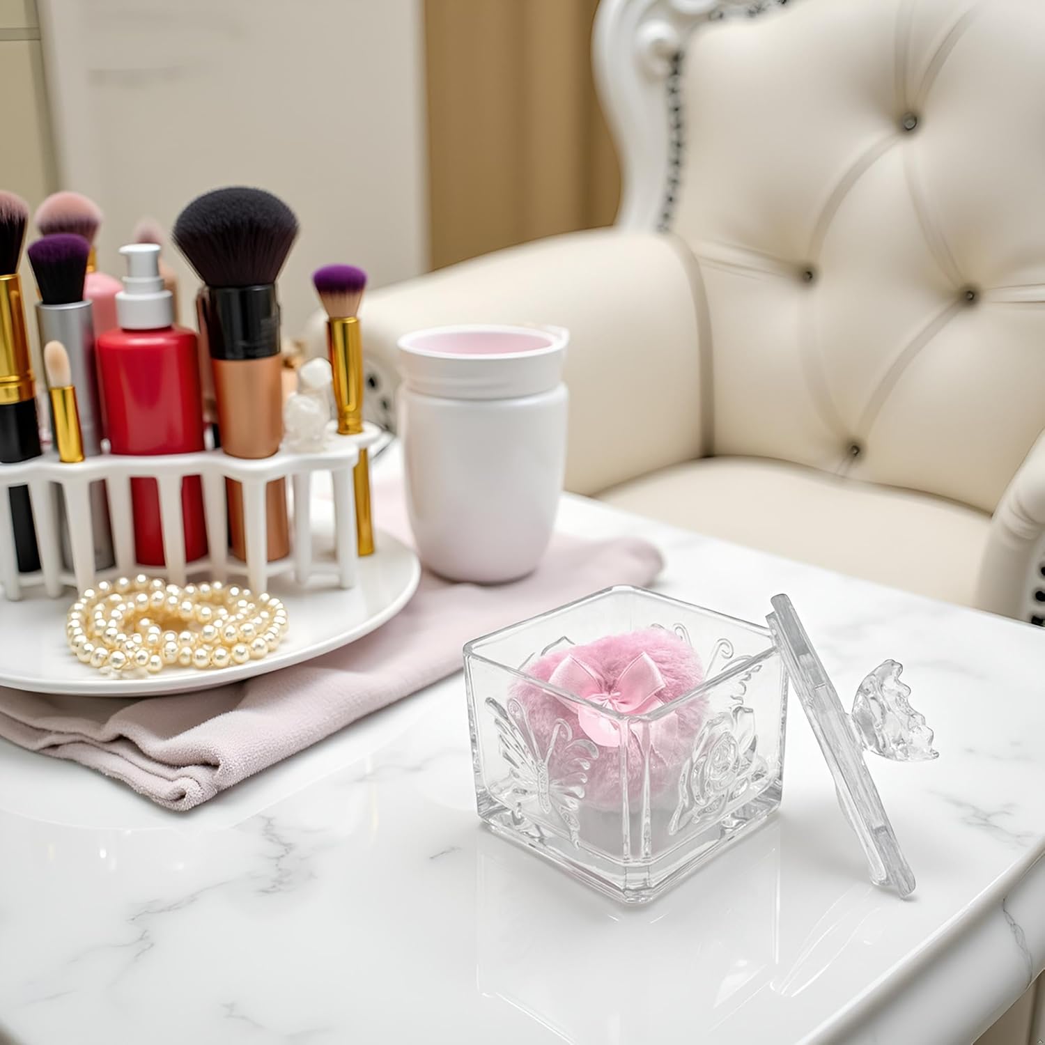 • 【Durable & Easy to Clean】 This glass powder puff case is made of high quality glass material, beautiful and durable. This product is not a sealed jar, easy to clean and daily care, will not take up too much space, but can store your daily trinkets and keep your items organized.