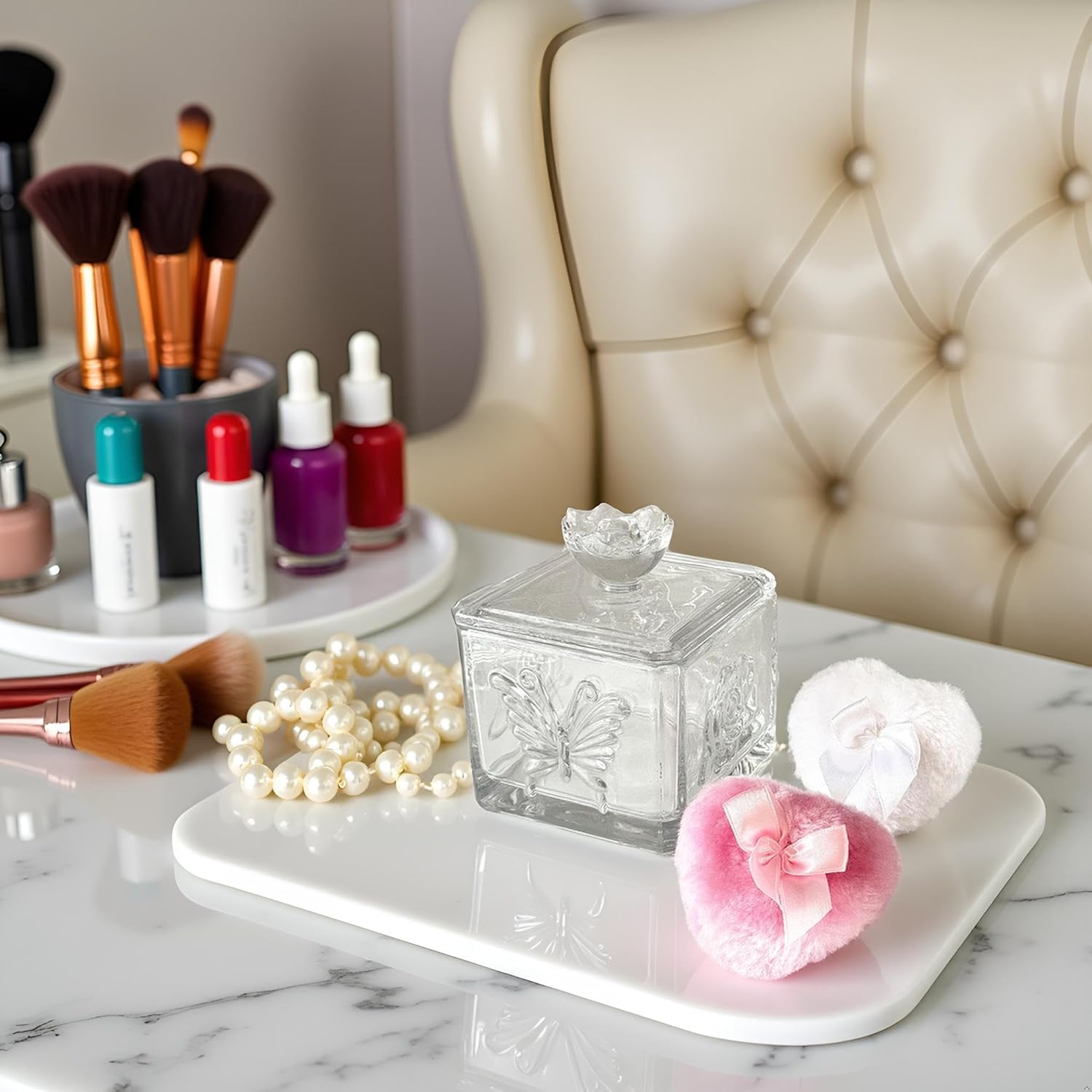 • 【Multi-Purpose Glass Box】This glass powder puff case can not only be used to store powder puffs, but also can be used to store earrings, rings, bracelets, hair accessories, knick-knacks, as well as other items in the dresser, bathroom and bedroom. It keeps your items away from dust and water, protects and decorates, and meets the needs of female users for cosmetic organization