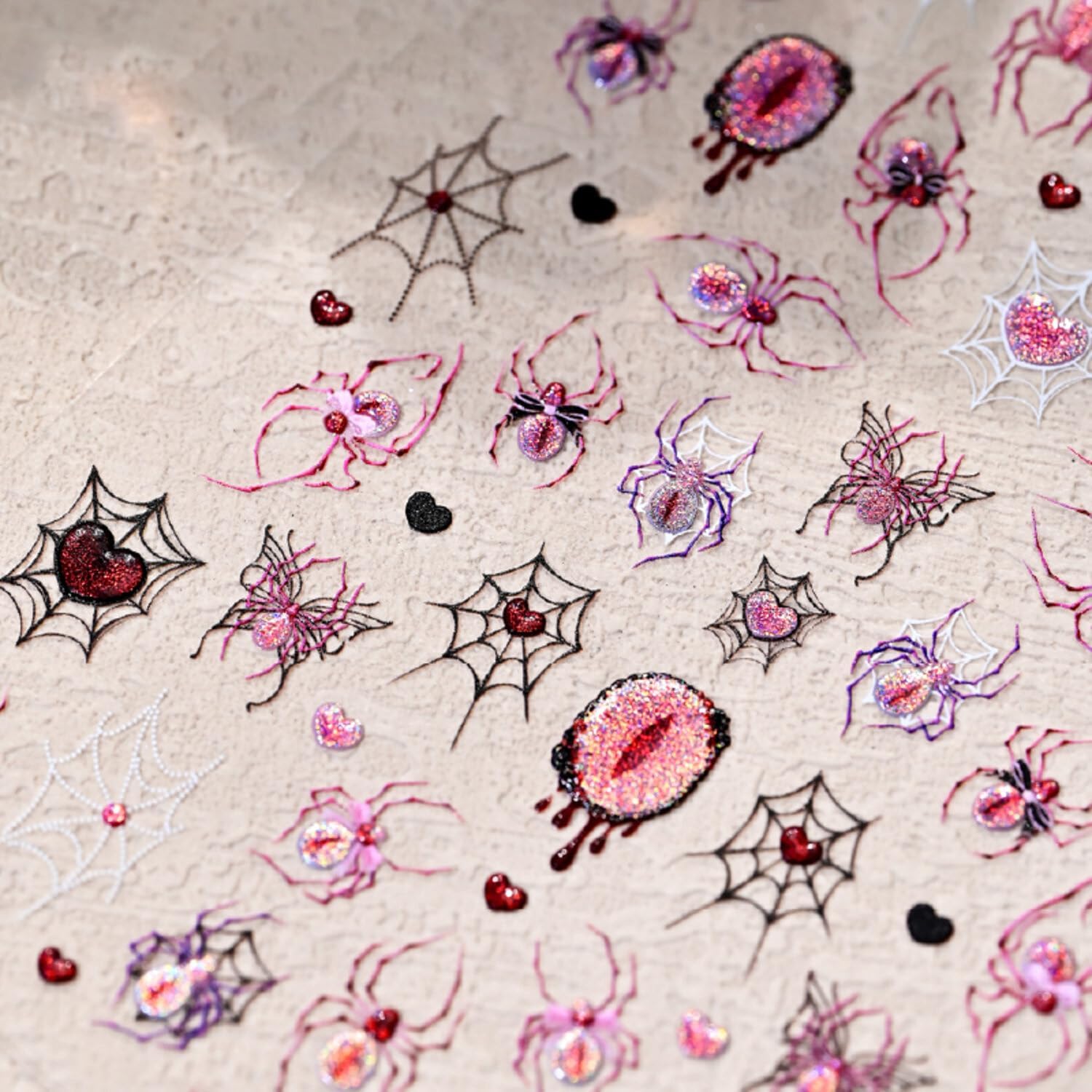 • Quantity:You will get 1 Sheet Halloween nail art stickers decals for nail art, charm purple Black Spider glitter nail stickers, 3D self adhesive nail design which can offer you multiple choices, meet your Halloween nail decoration needs