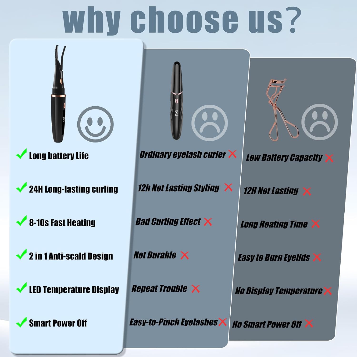 • Quick Natural Curling - The heated eyelash curler can fast heat up within 10s, creating a perfect natural curling eye makeup quickly without crimping or pinching. Lasting for 24 hours