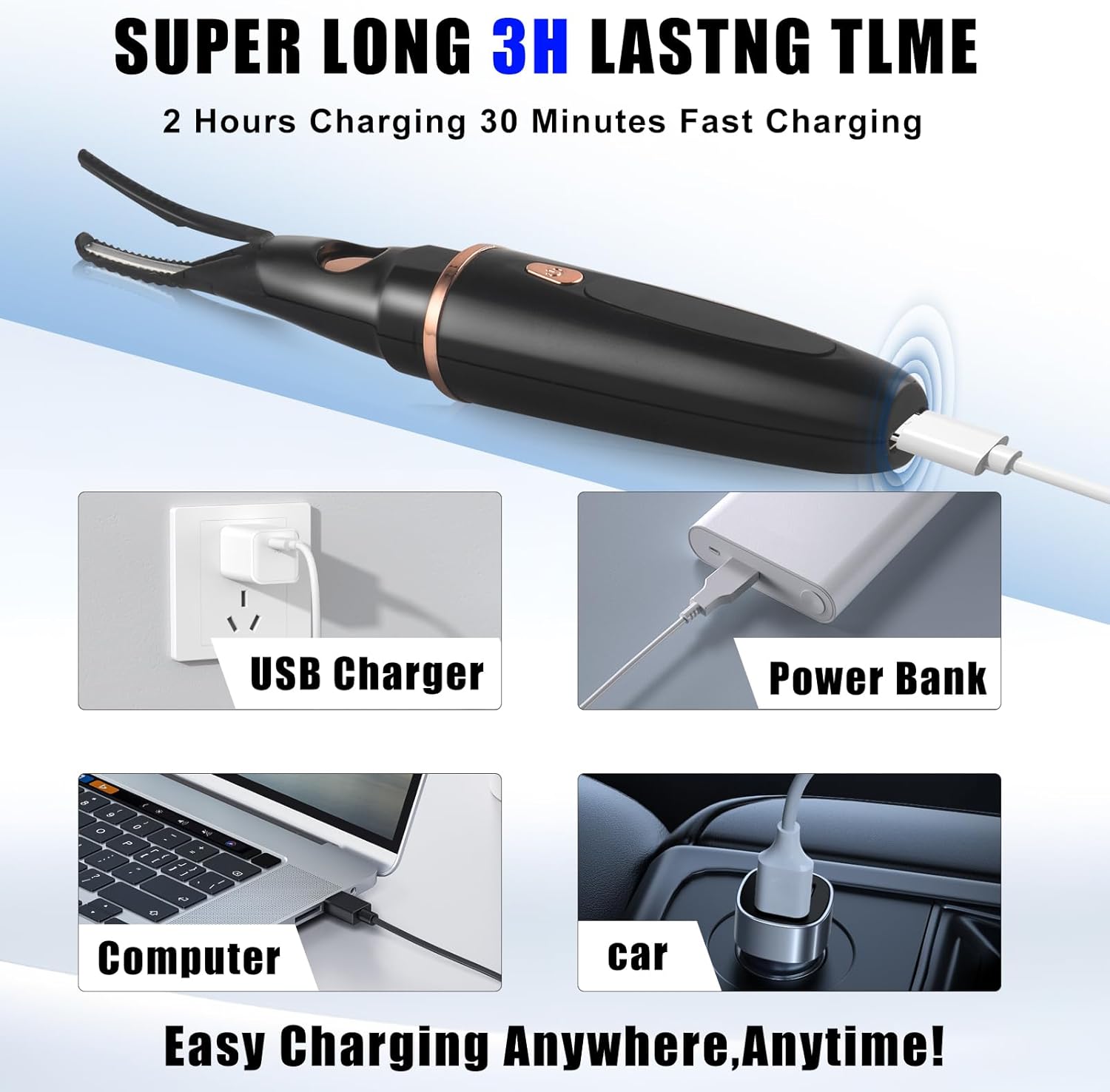 • Type-C Fast Charging and Portable - Type-C rechargeable heated lash curler with slim and compact design makes it ideal for taking on the go. An essential in every girl's makeup pouch. Best gift for women and girls